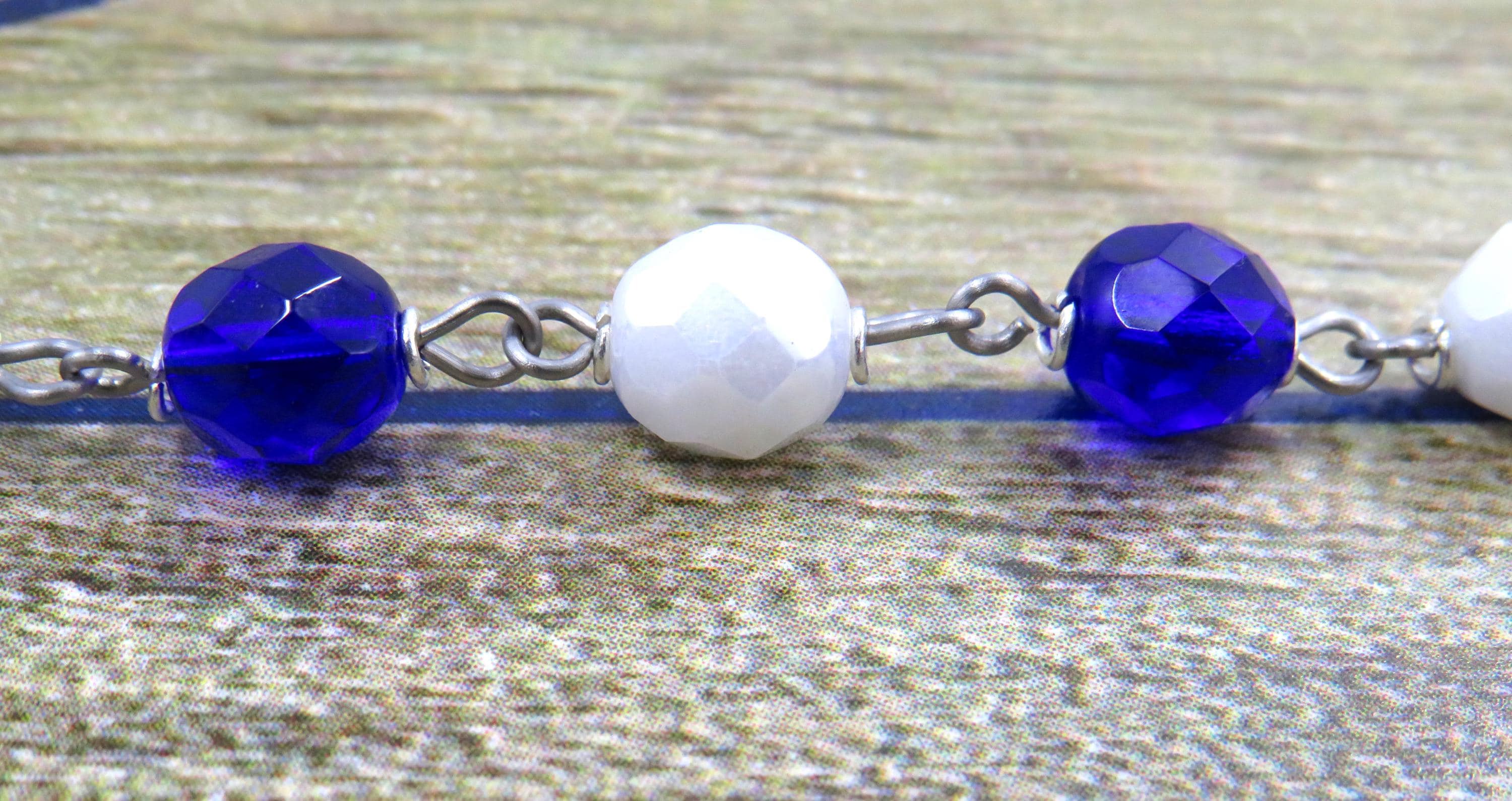 *Czech 8mm Dark Blue & Opaque White Glass Beads