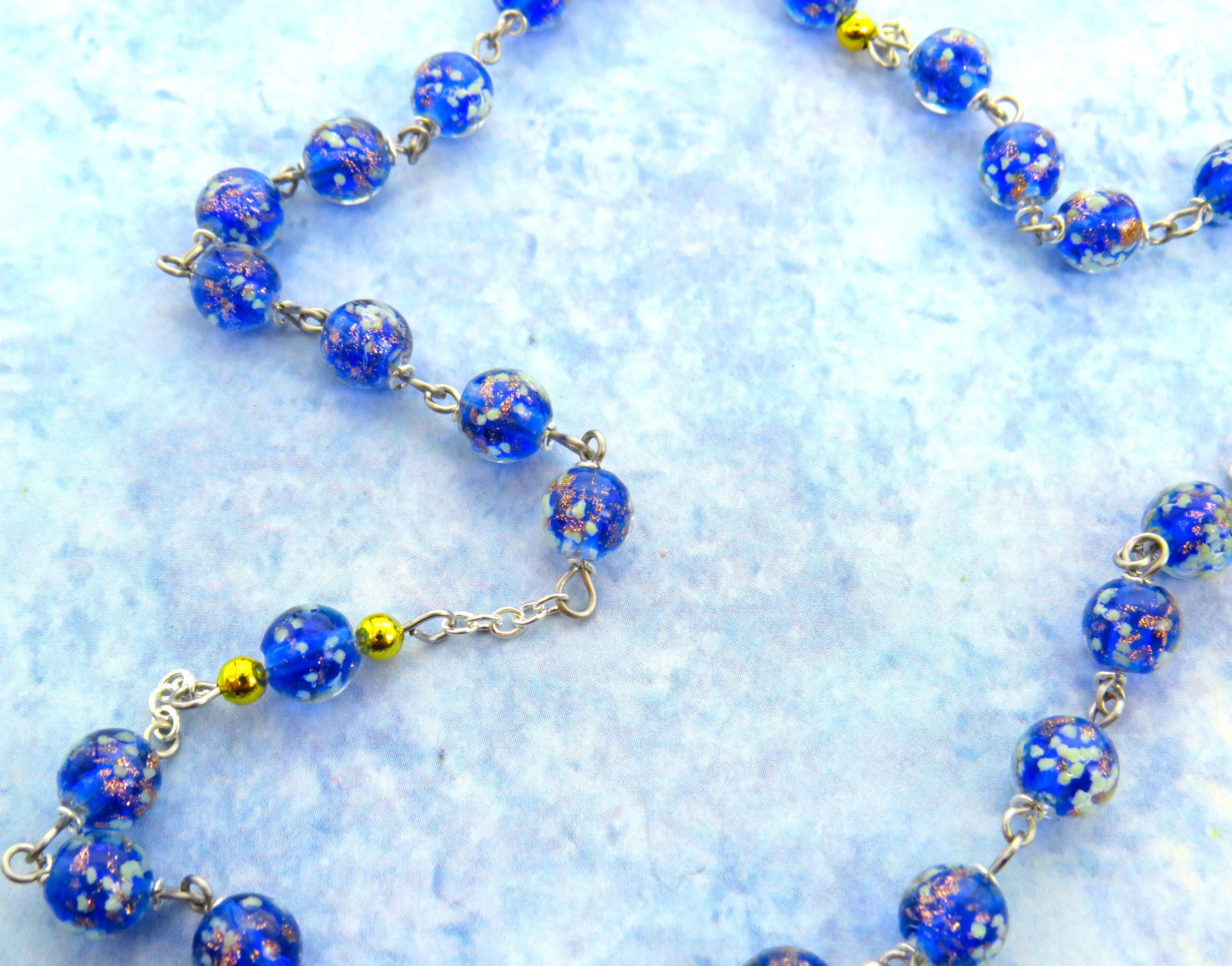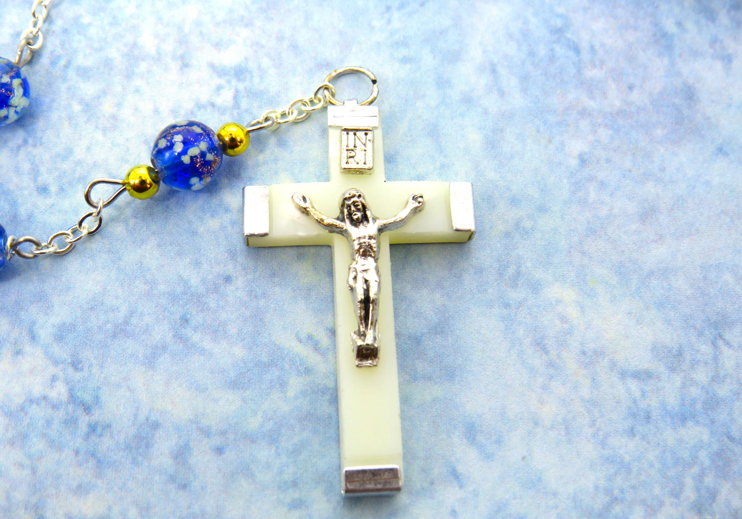 *Royal Blue Glass "Firefly Glow in the Dark" Rosary