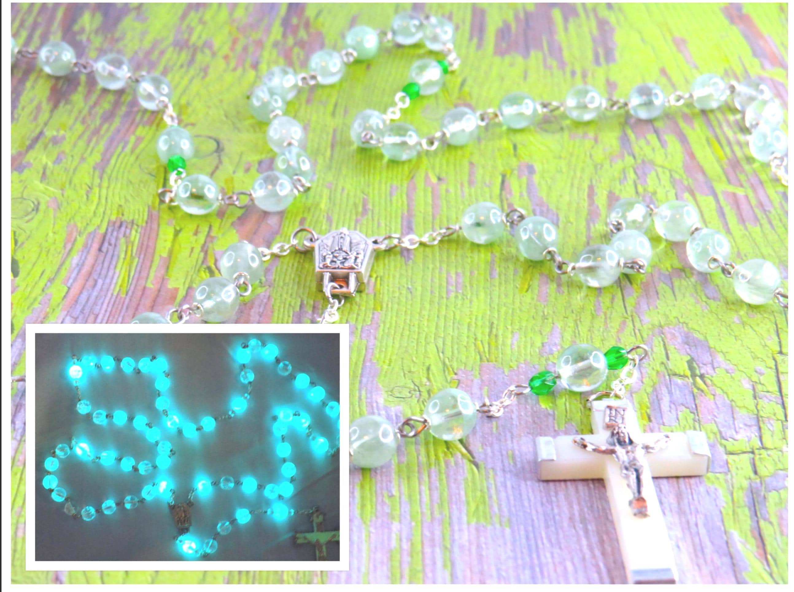 *Czech Light Green Glass "Glow in the Dark" Rosary