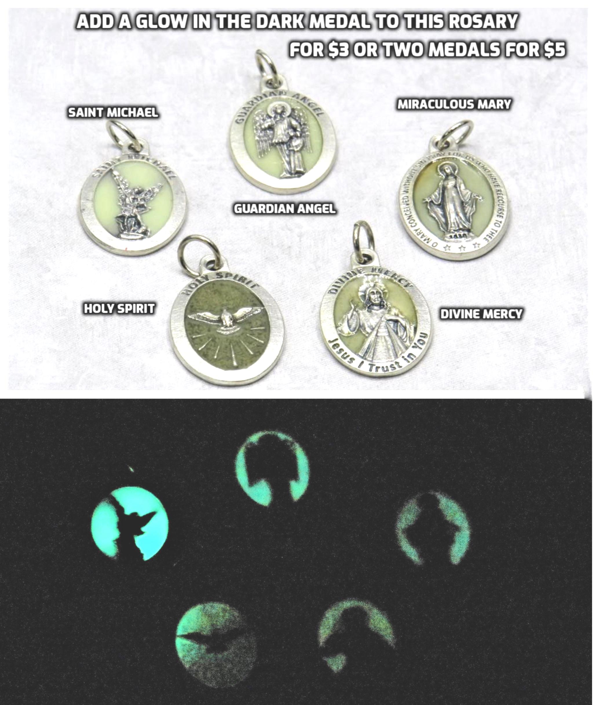 *Customize this Rosary with a Glow in the Dark medal made in Italy for only $3 more or two medals for $5 more.