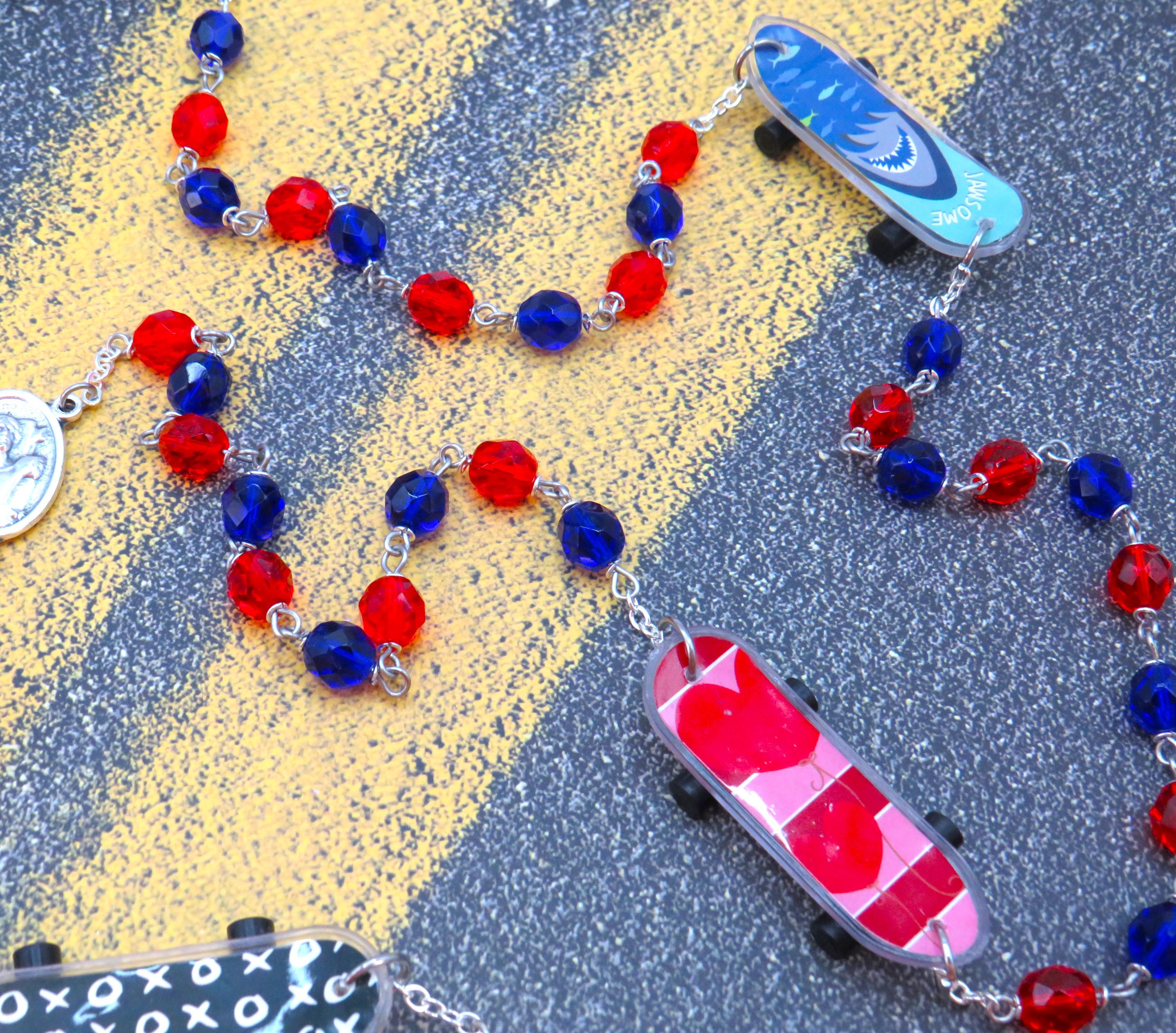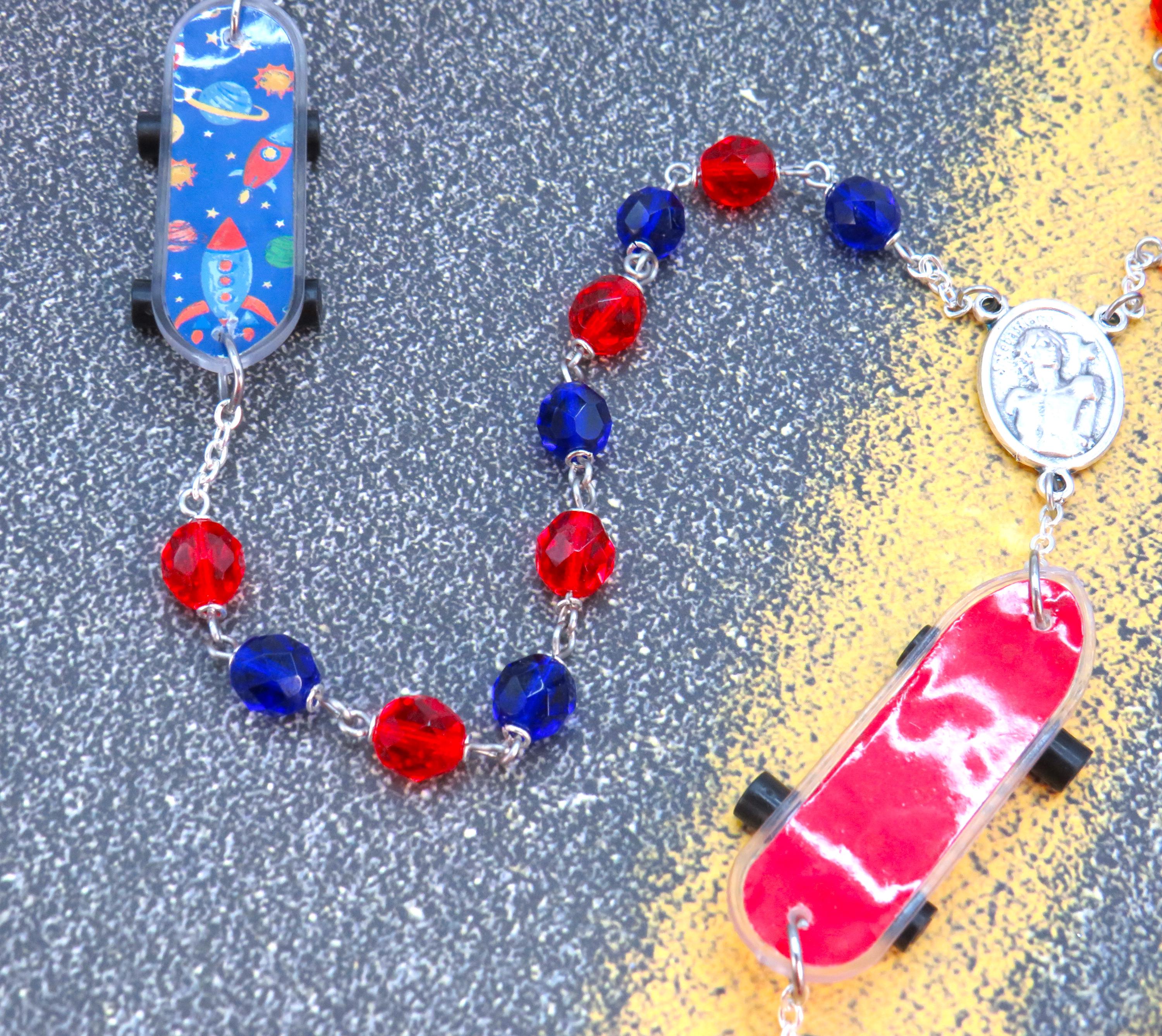 *Acrylic 15x48mm Skateboard Father Beads (Wheels Turn)