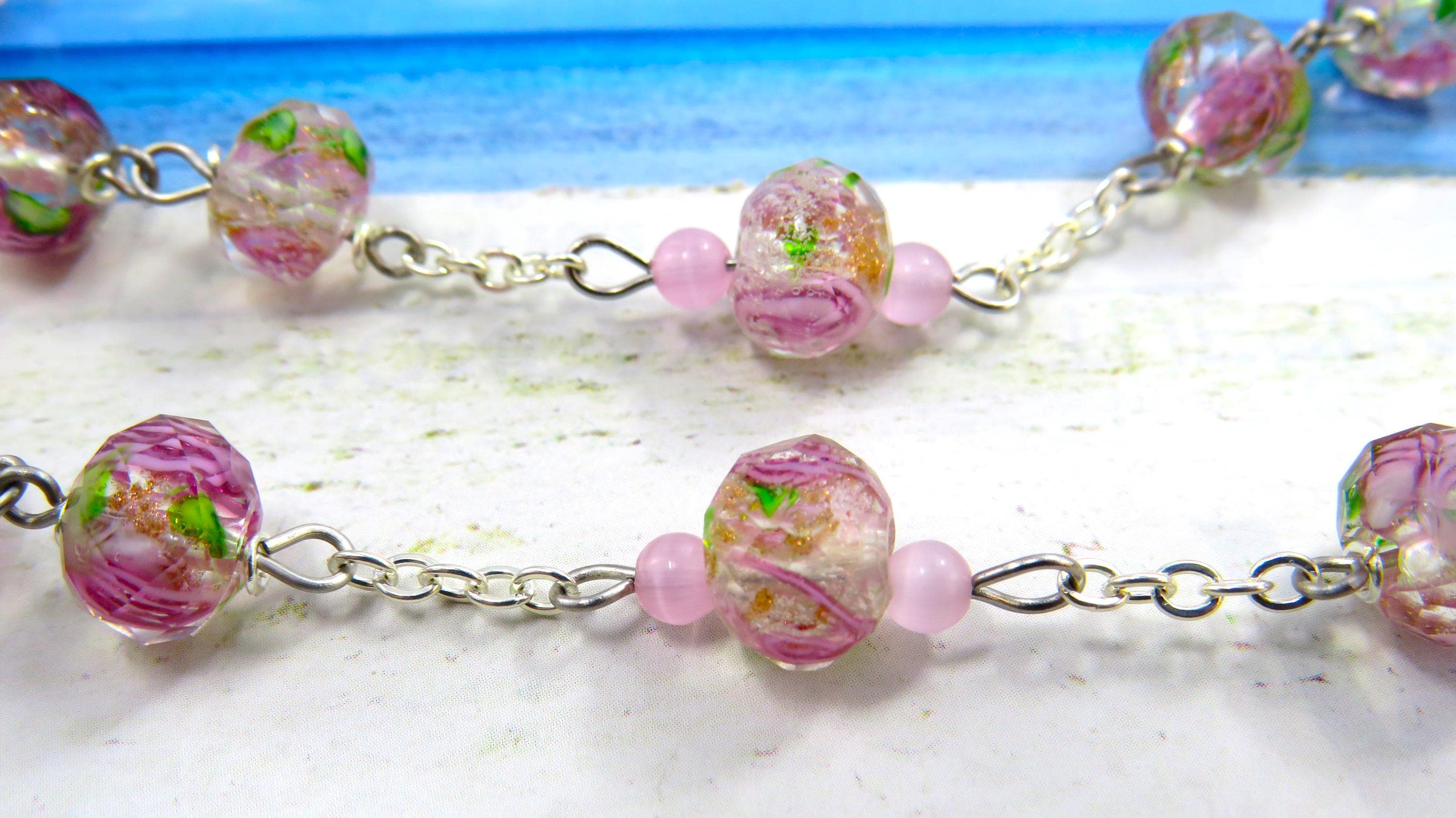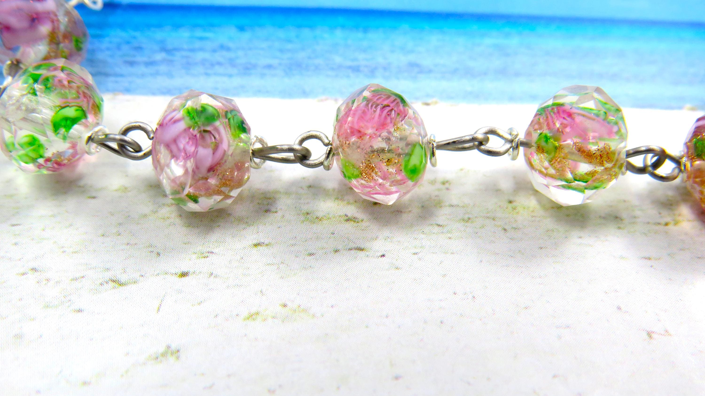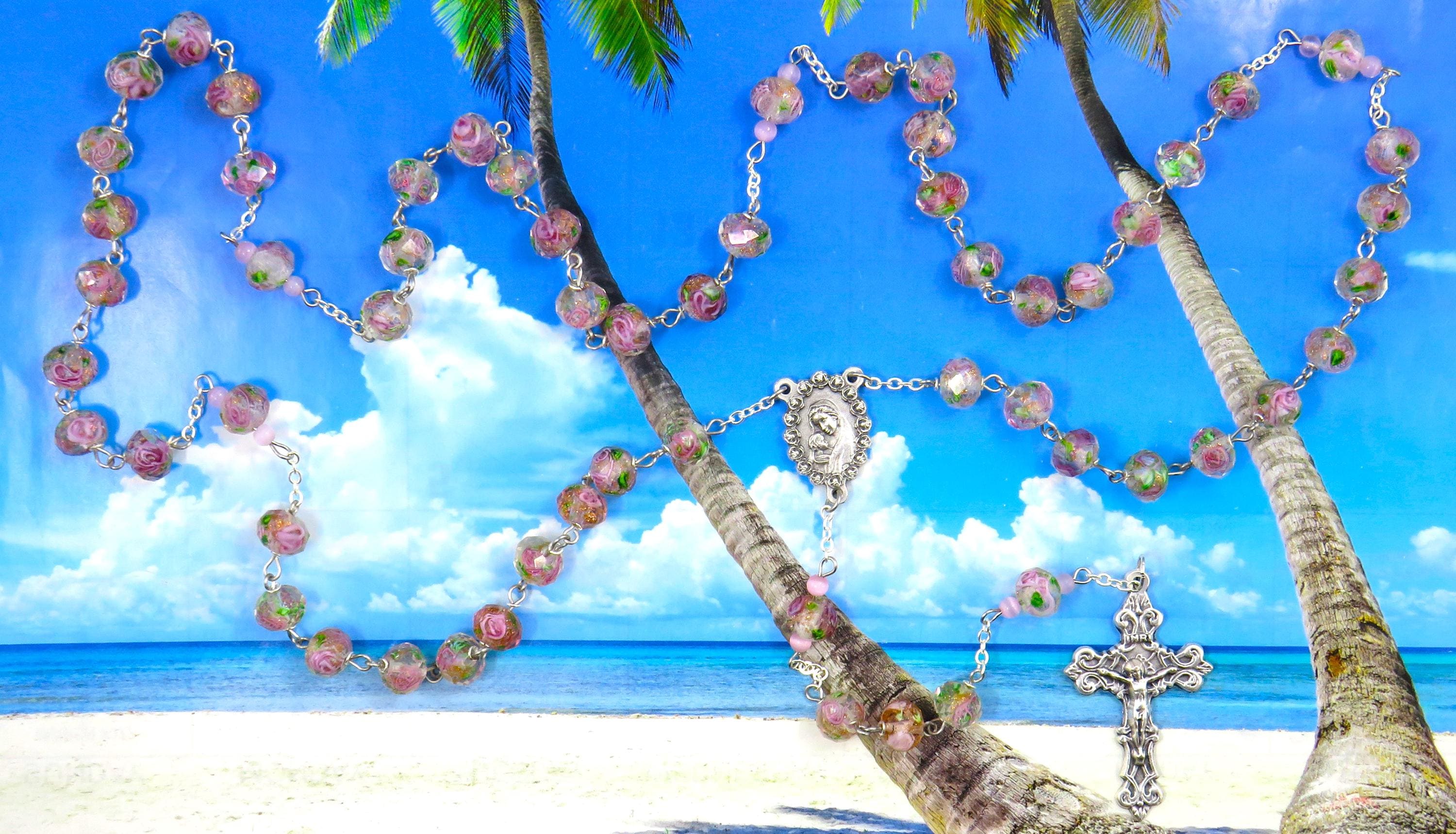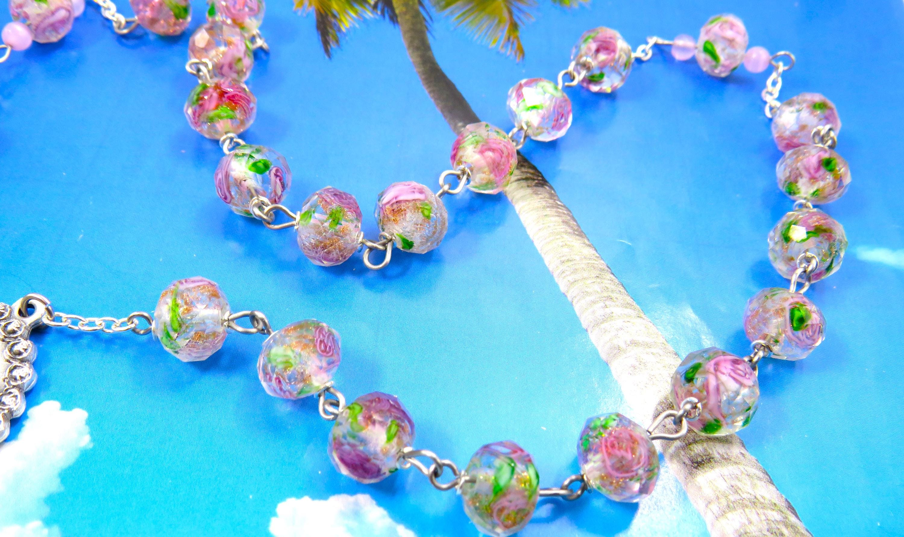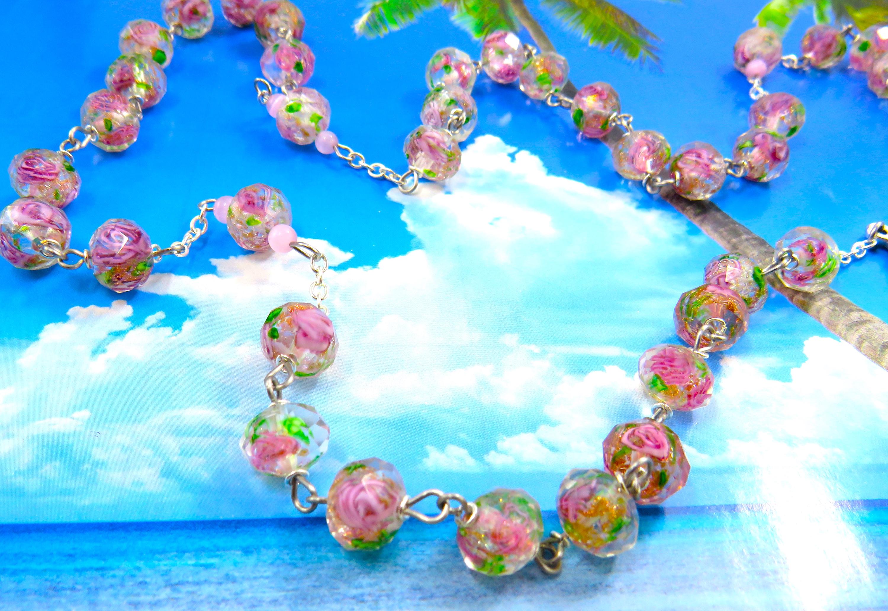 *Light Pink Rose Flower Handmade Lamp Glass Rosary