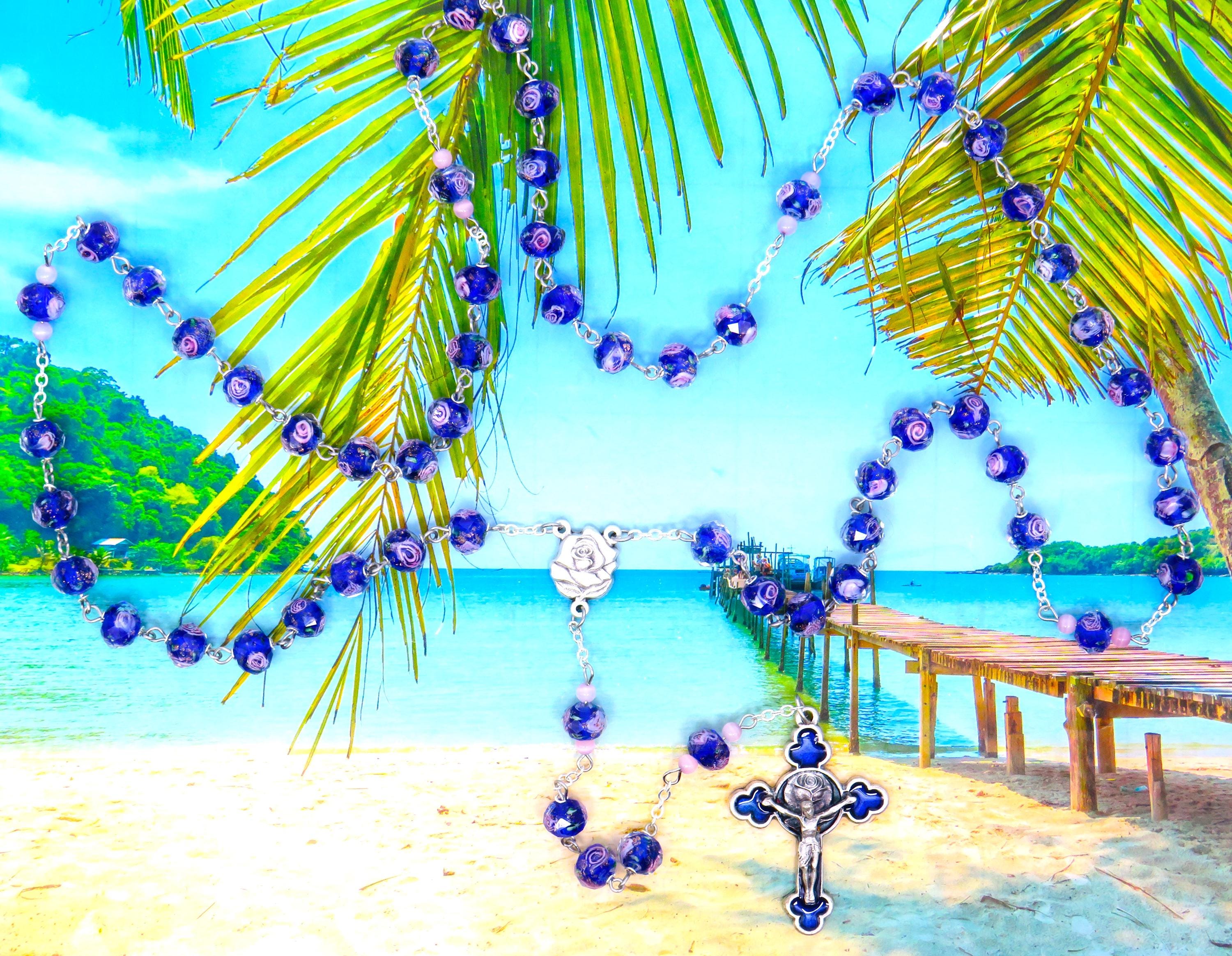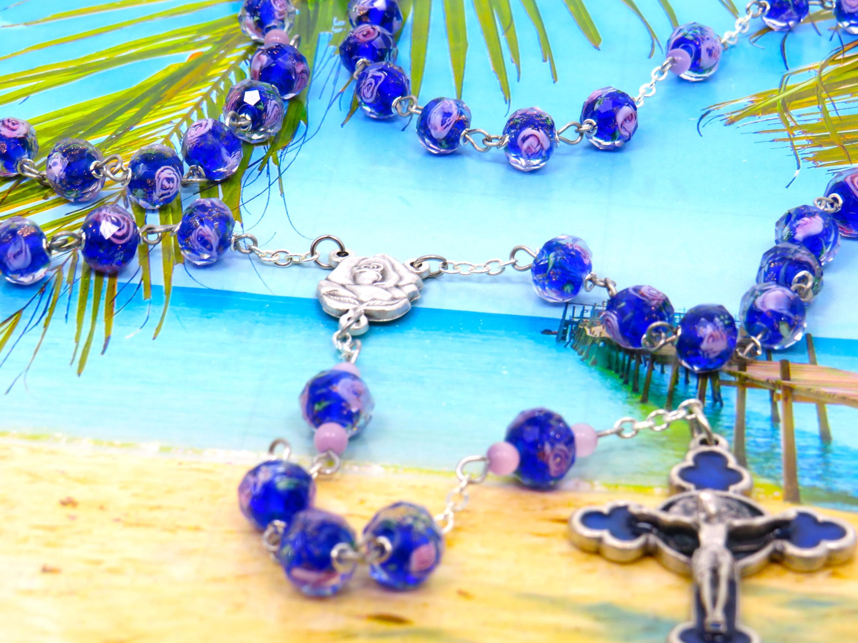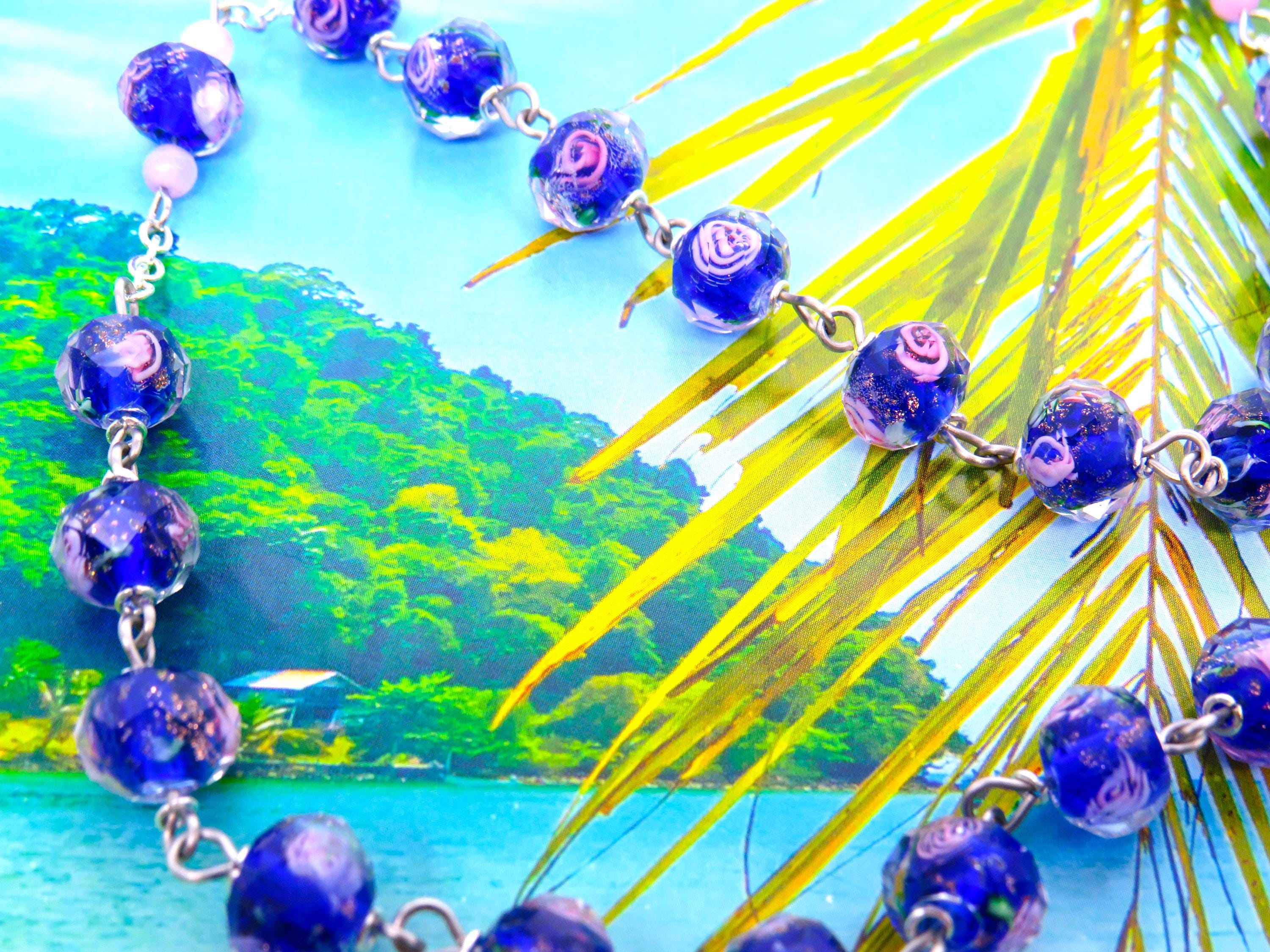 *Dark Blue Rose Flower Handmade Lamp Glass Rosary