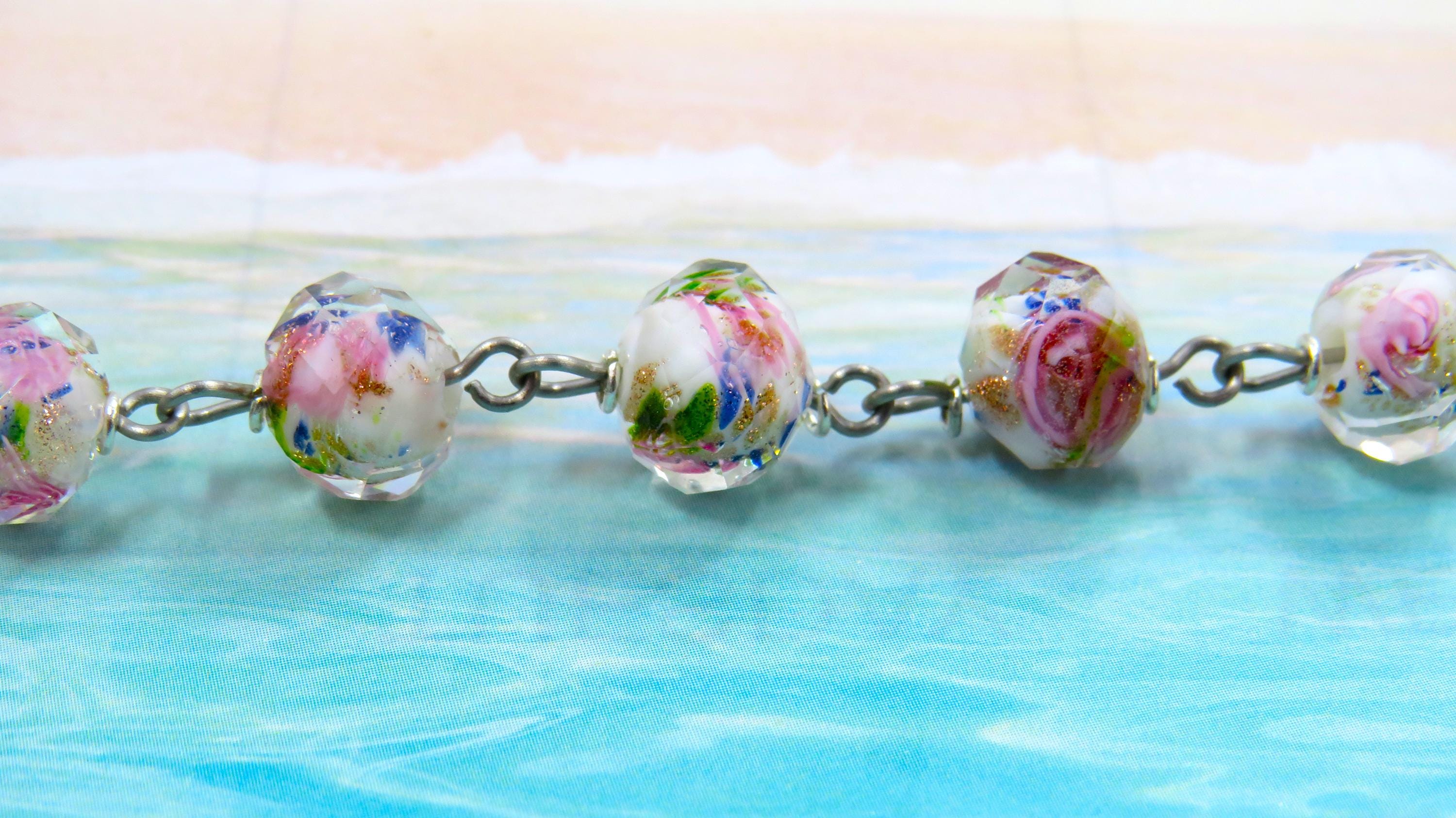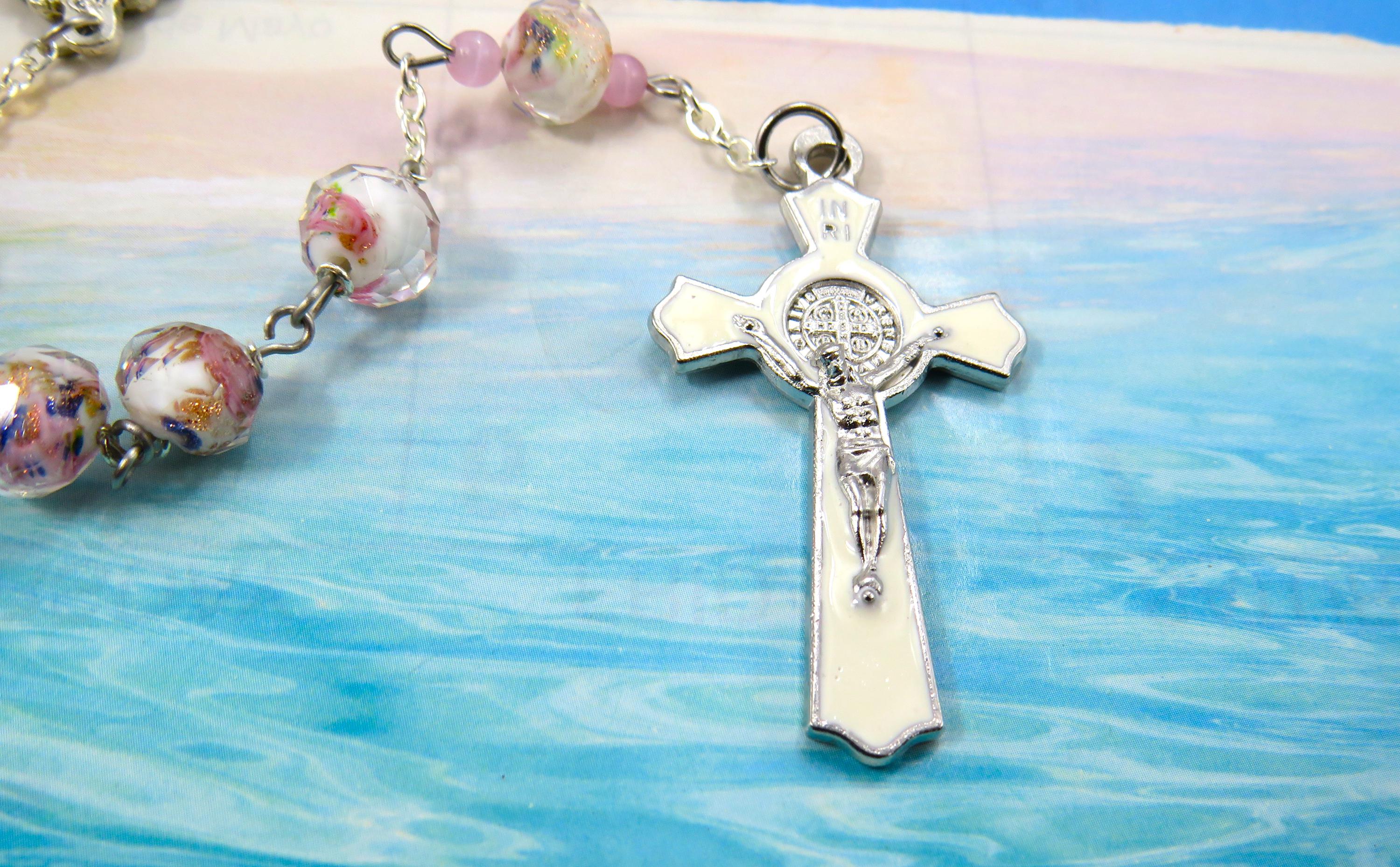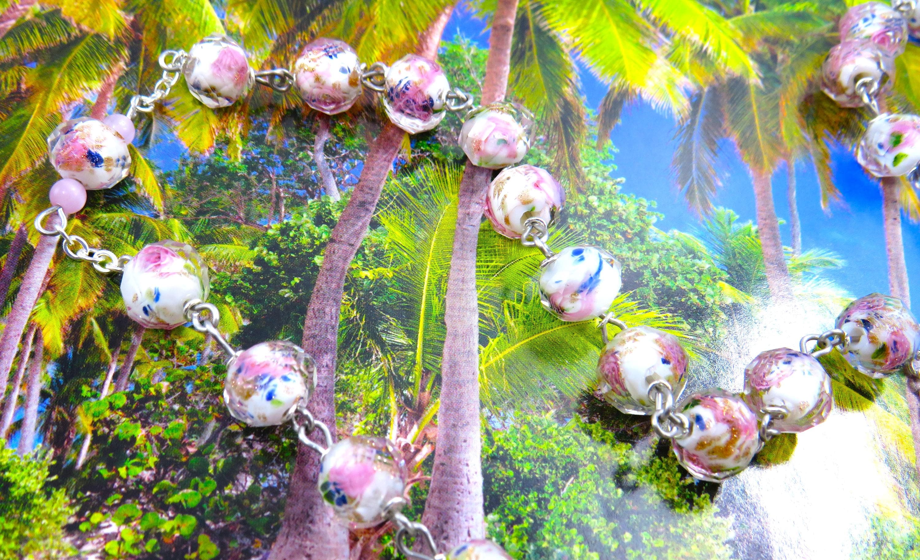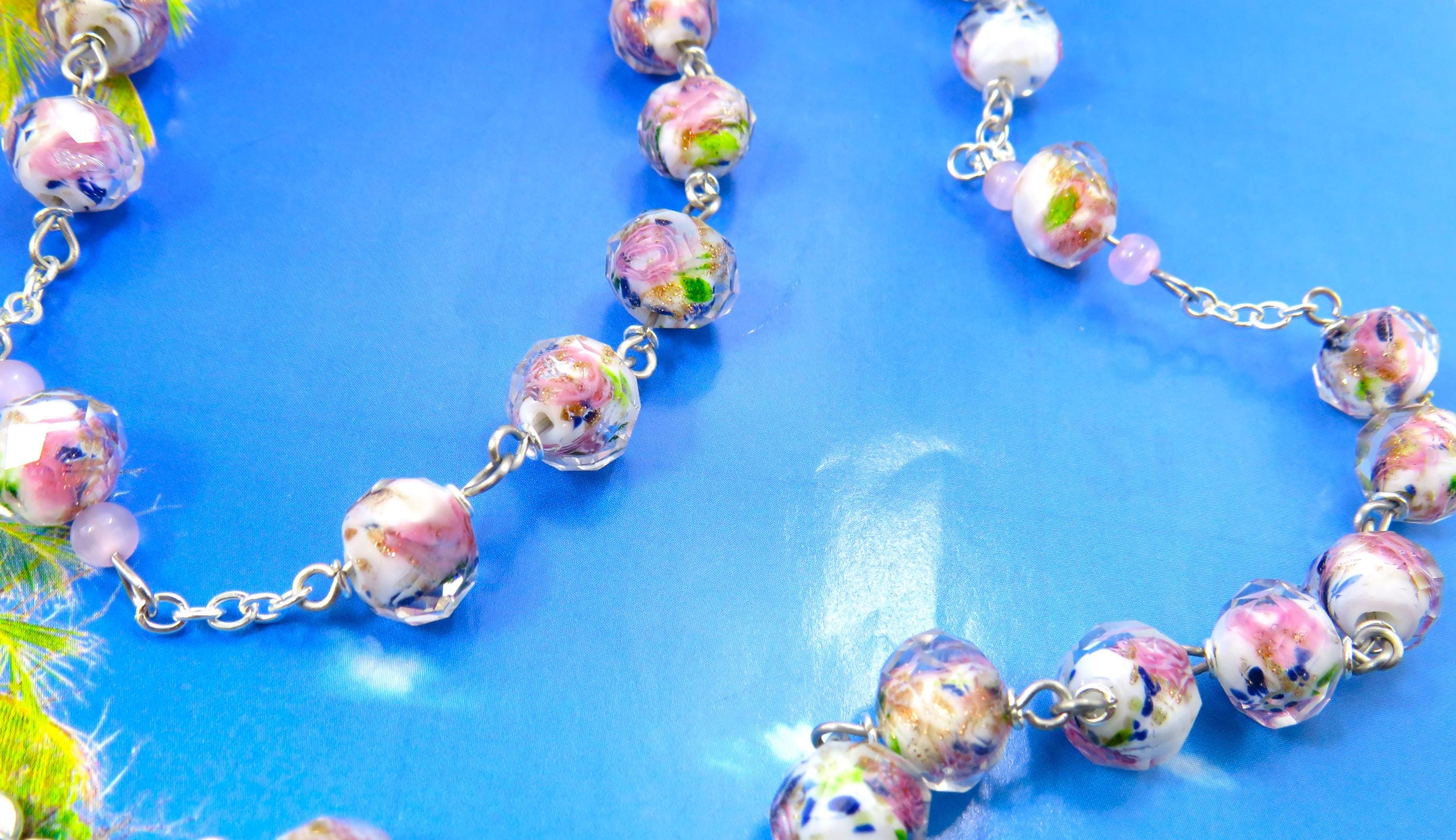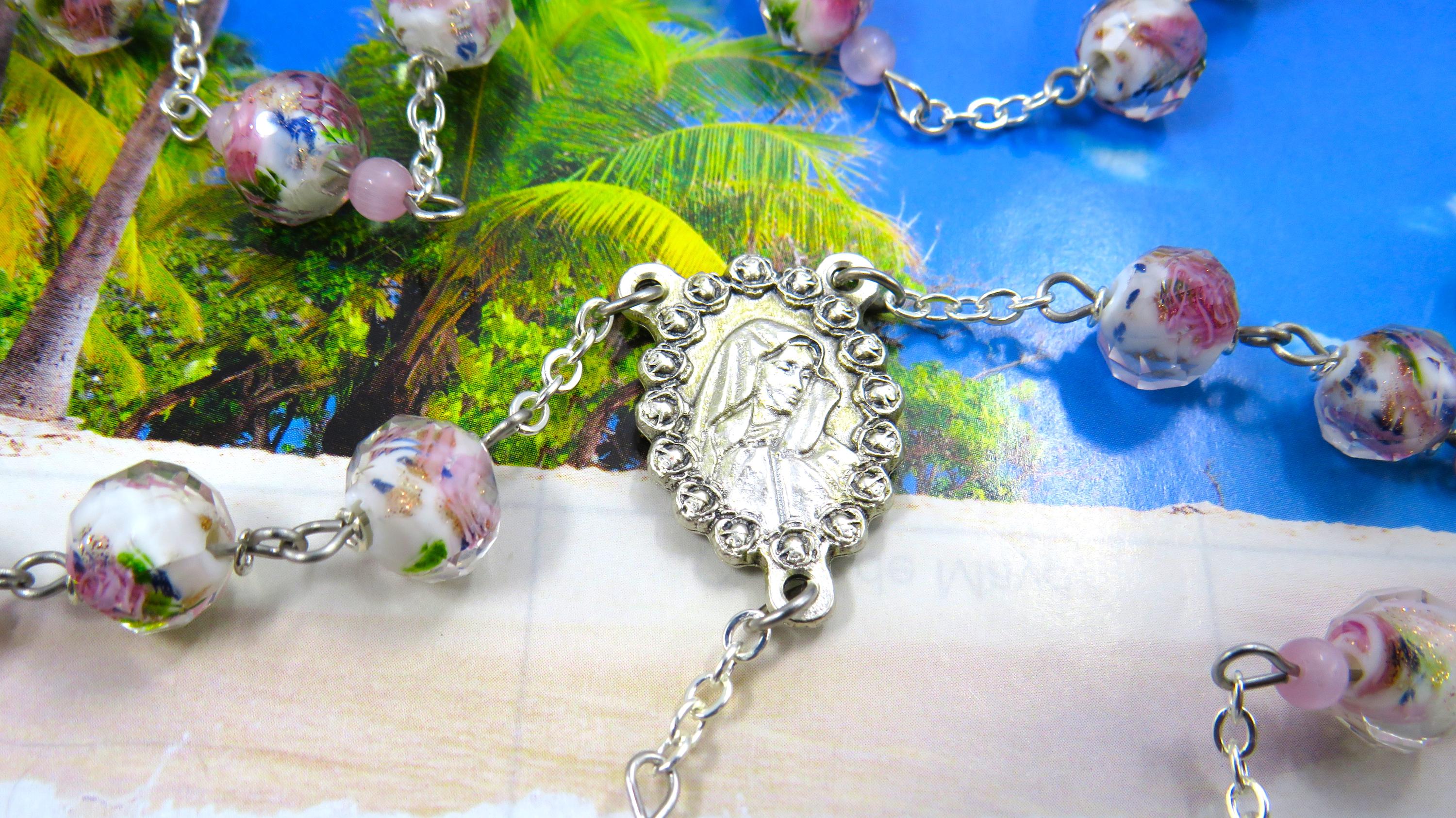 *White & Pink Rose Flower Handmade Lamp Glass Rosary