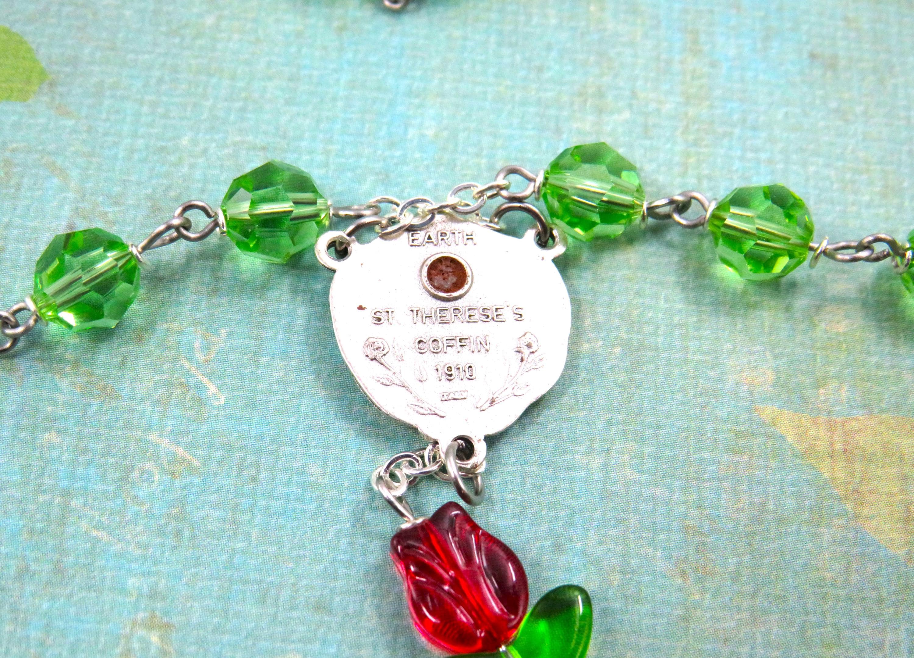 *Italian Silver St Therese (The Little Flower) Relic Center with Earth from Lisieux, France