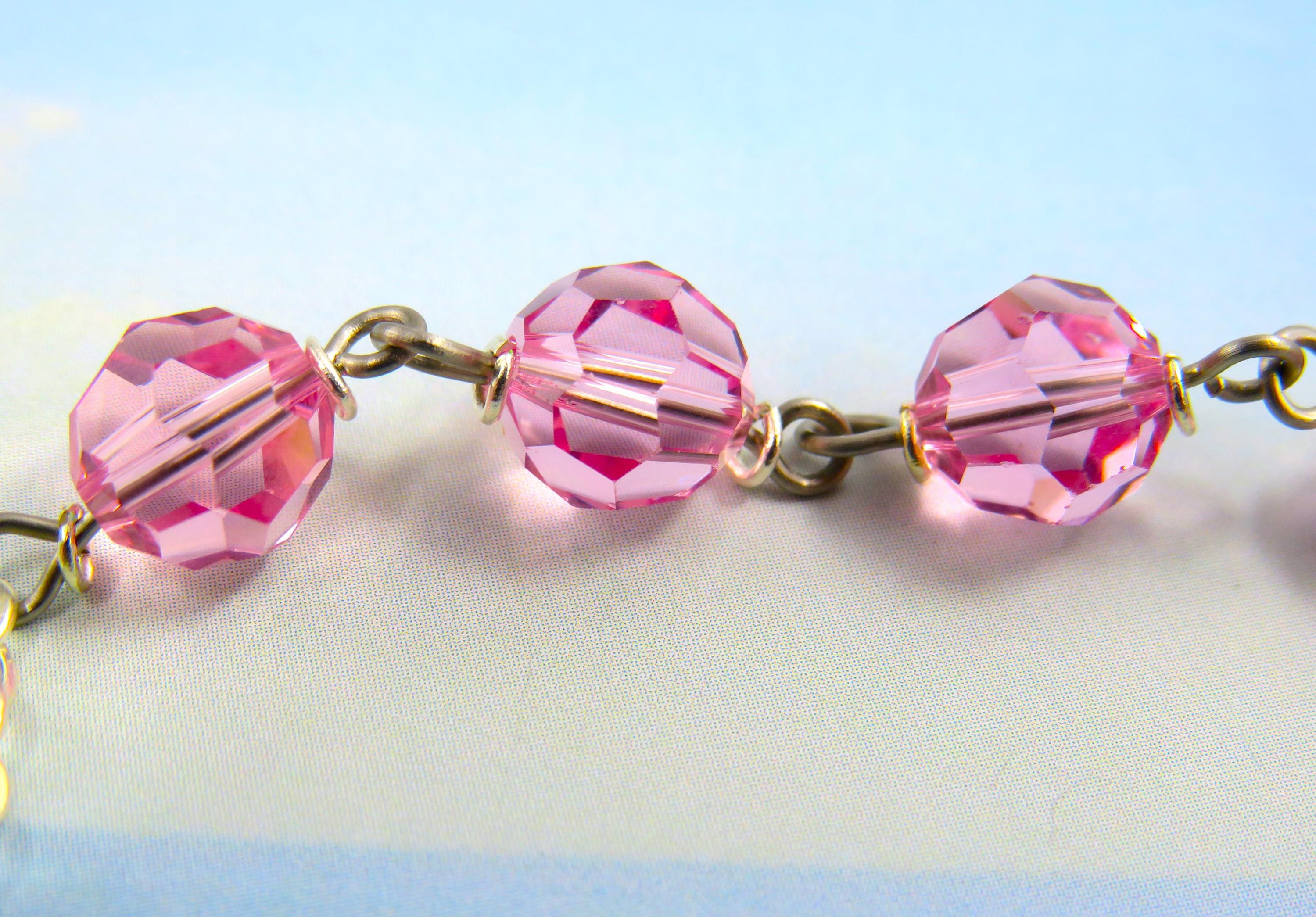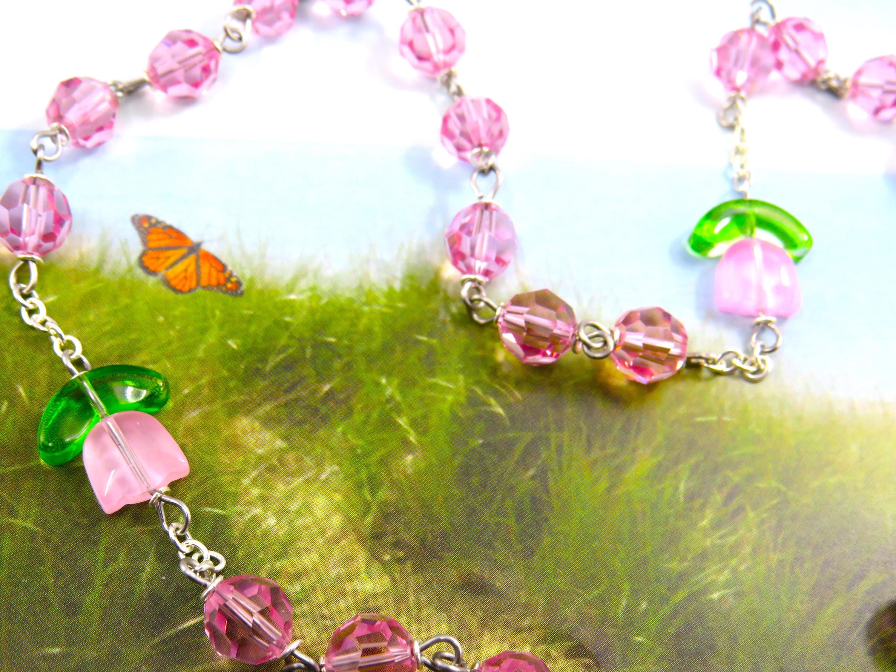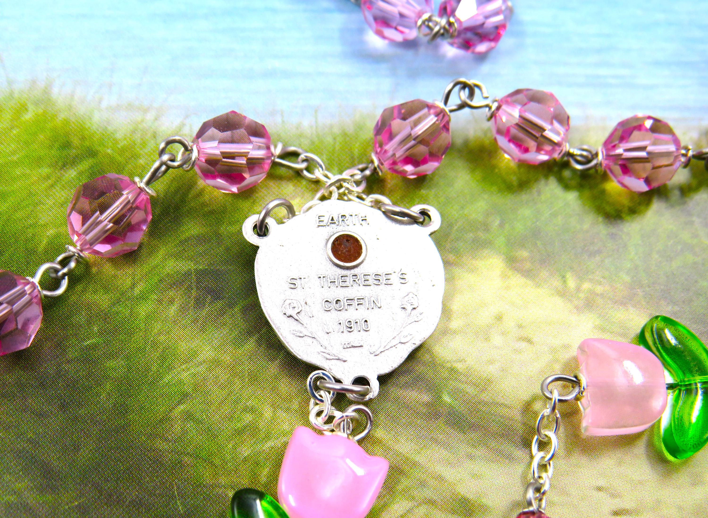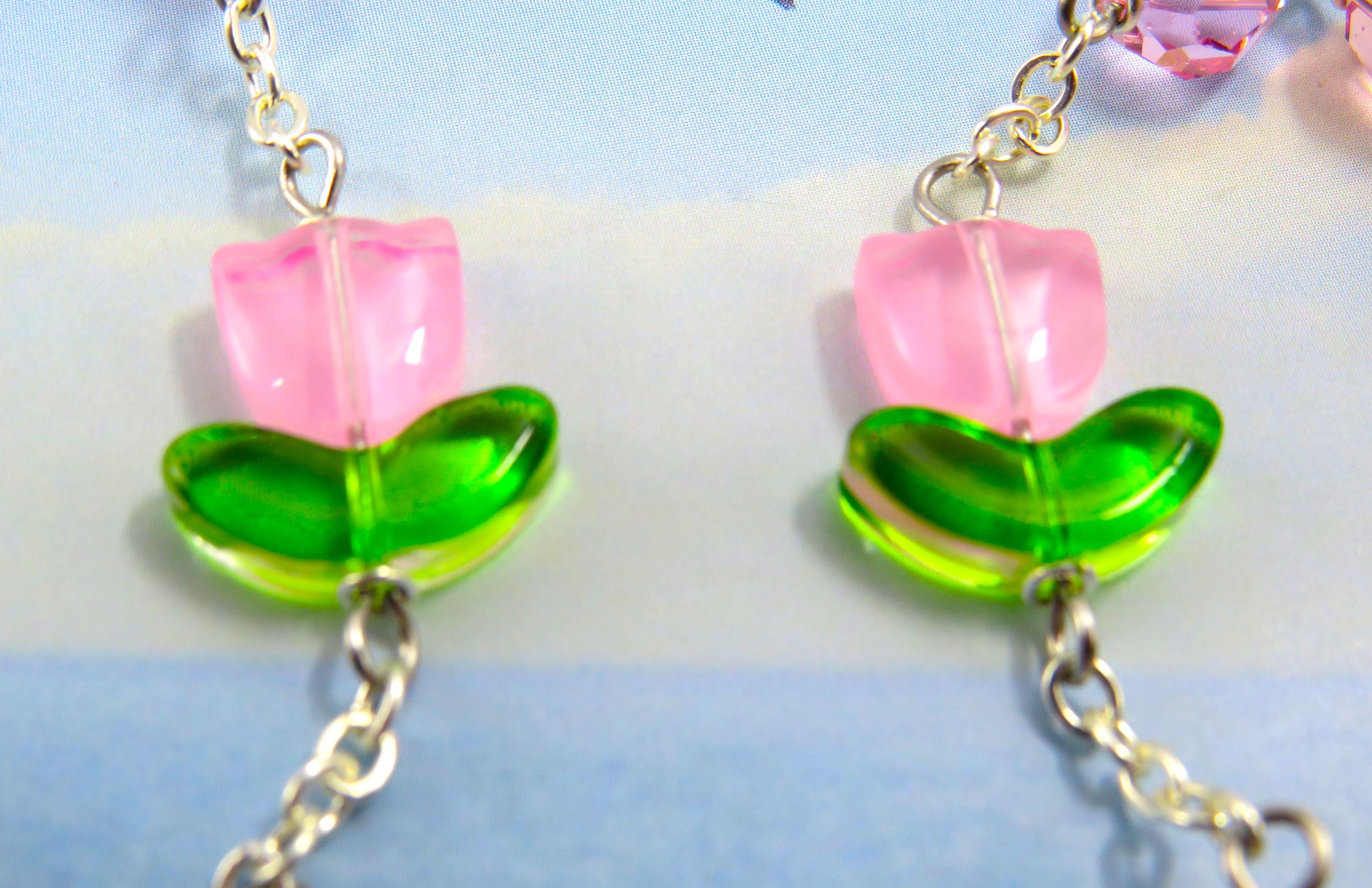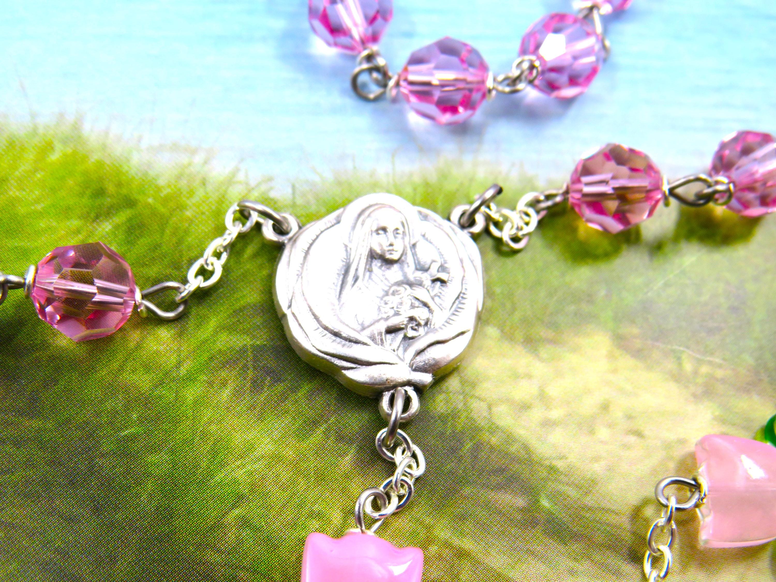 *Pink Tulip Flower Swarovski Crystal Rosary