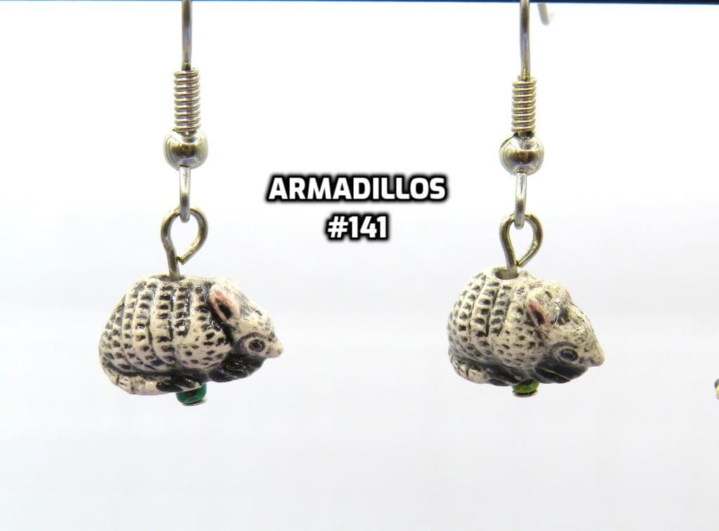 *3D Hand Painted Armadillo 7x13mm Ceramic Bead Earrings