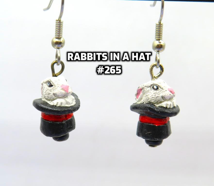 *3D Rabbit In a Magician's Hat 12x14mm Ceramic Bead Earrings