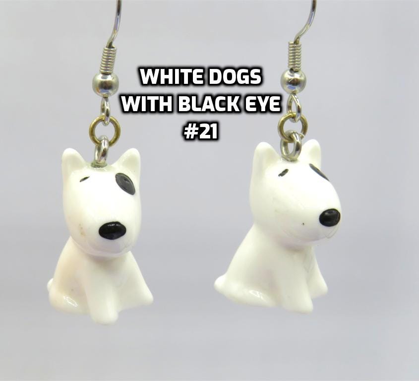 *3D Hand-painted Bull Terrier (White with Black Eye) Dog Resin 13x20mm Bead Earrings