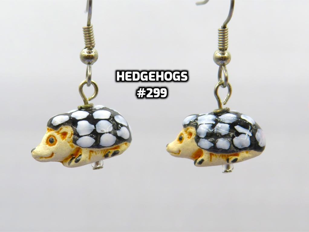 *3D Hand Painted Hedgehog 13x18mm Ceramic Bead Earrings