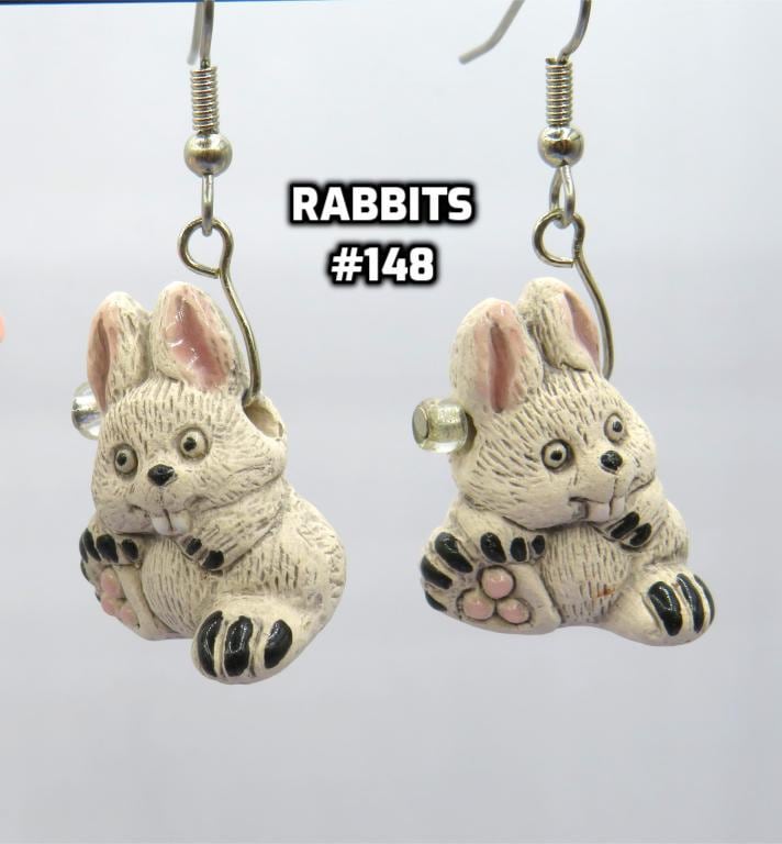 *3D Cute Bunny 24x18mm Ceramic Bead Earrings