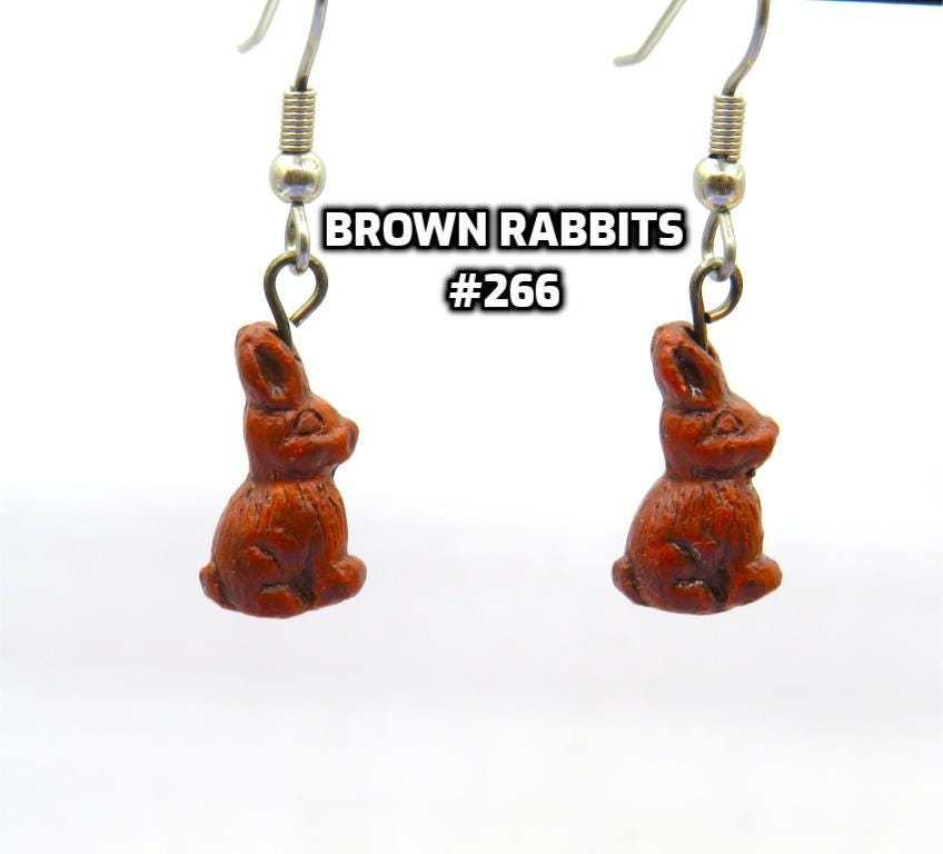 *3D Brown Bunny 17mm Ceramic Bead Earrings
