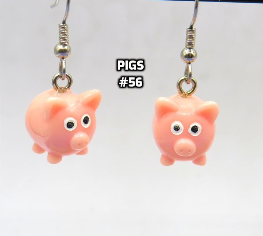 *3D Hand-painted Pig Resin 15mm Bead Earrings