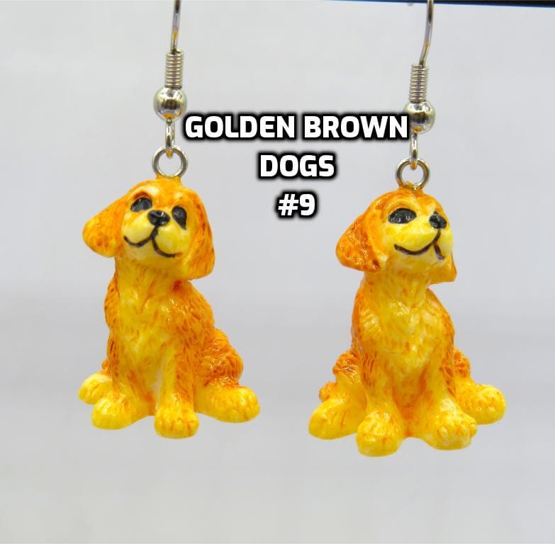 *3D Hand-painted Brown Dog Resin 17x24mm Bead Earrings