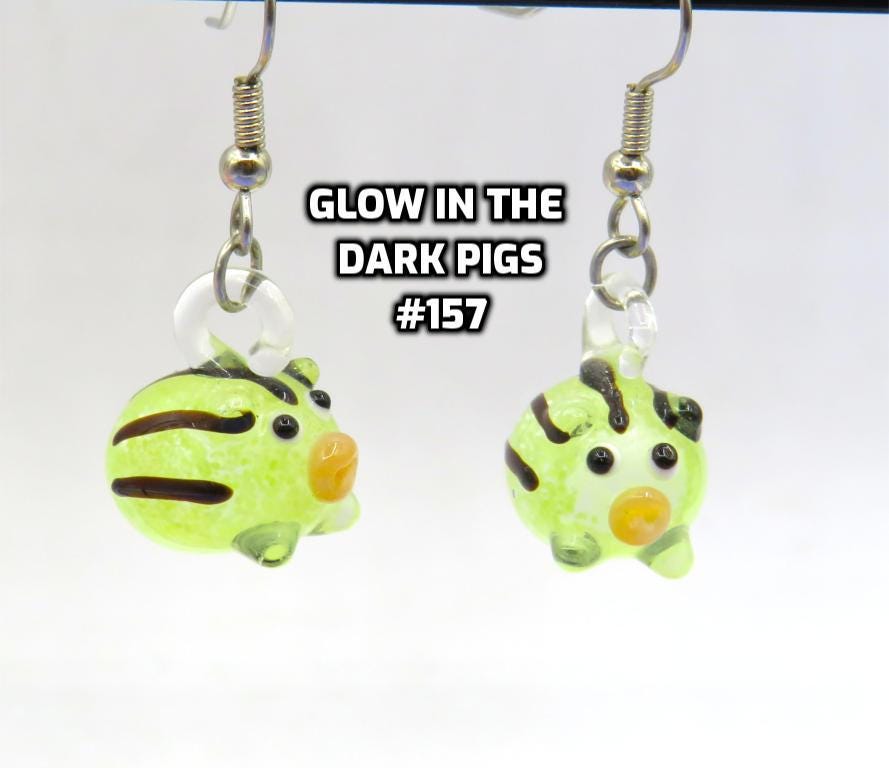 *3D Lamp Glass Pigs with Black Stripes "Glows in the Dark" 15x18mm Glass Bead Earrings