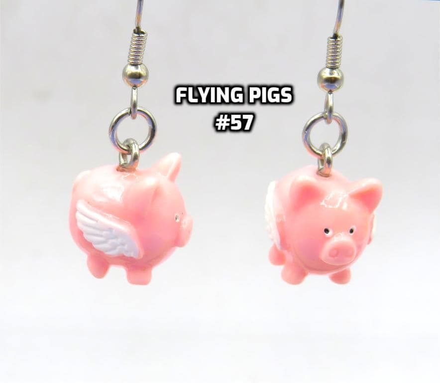 *3D Hand-painted Flying Pig Resin 15mm Bead Earrings