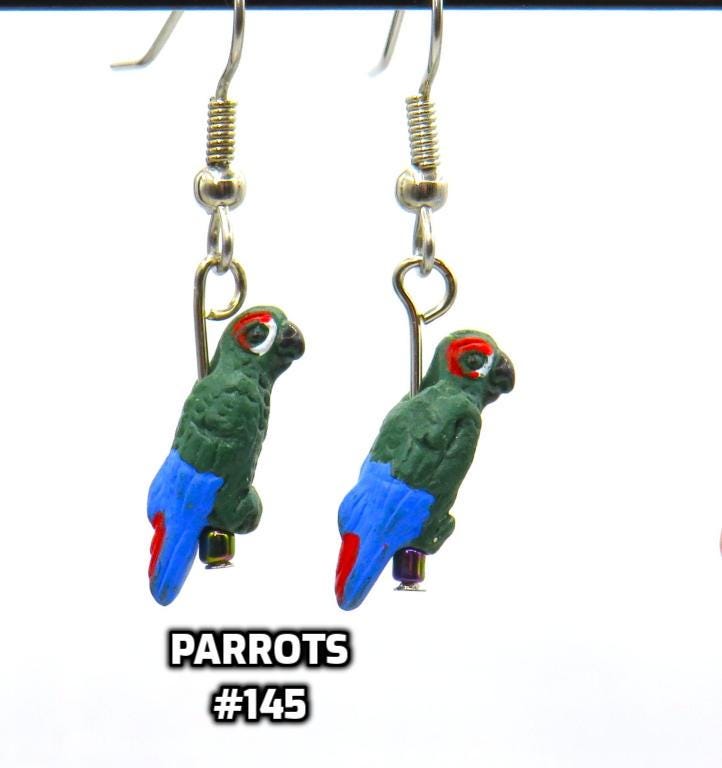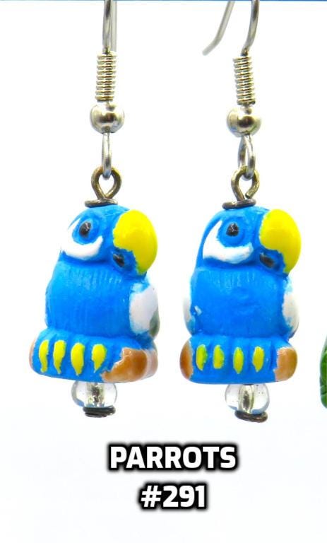 *Parrot Ceramic 16x12mm Charm Hand-painted 3-D Bead Earrings