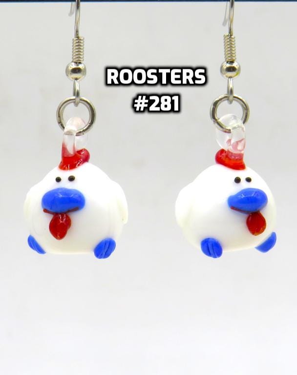 *White Rooster Glass 15x21mm 3D Bead Earrings