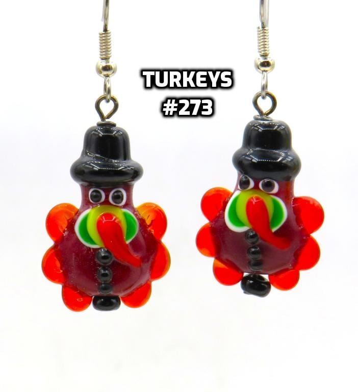 *3-D Handmade Lampwork Glass Turkey 18x28mm Bead Earrings