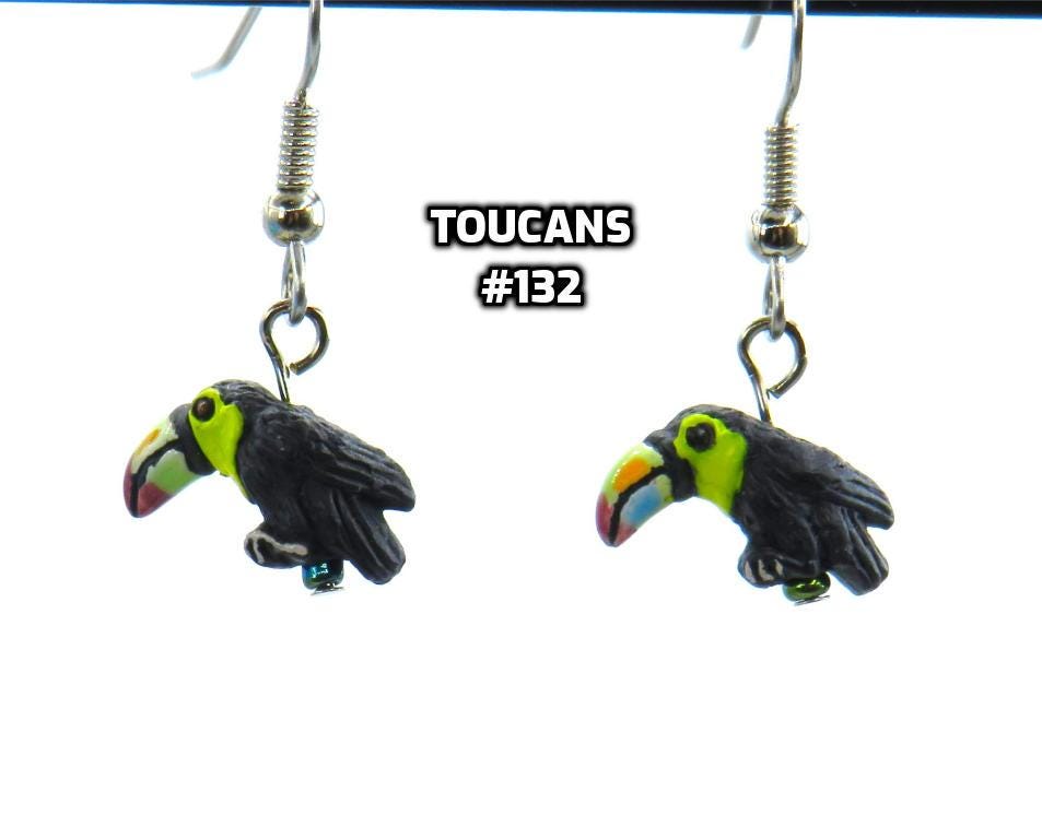 *Toucan Bird Ceramic 12x14mm Hand-painted 3-D Bead Earrings