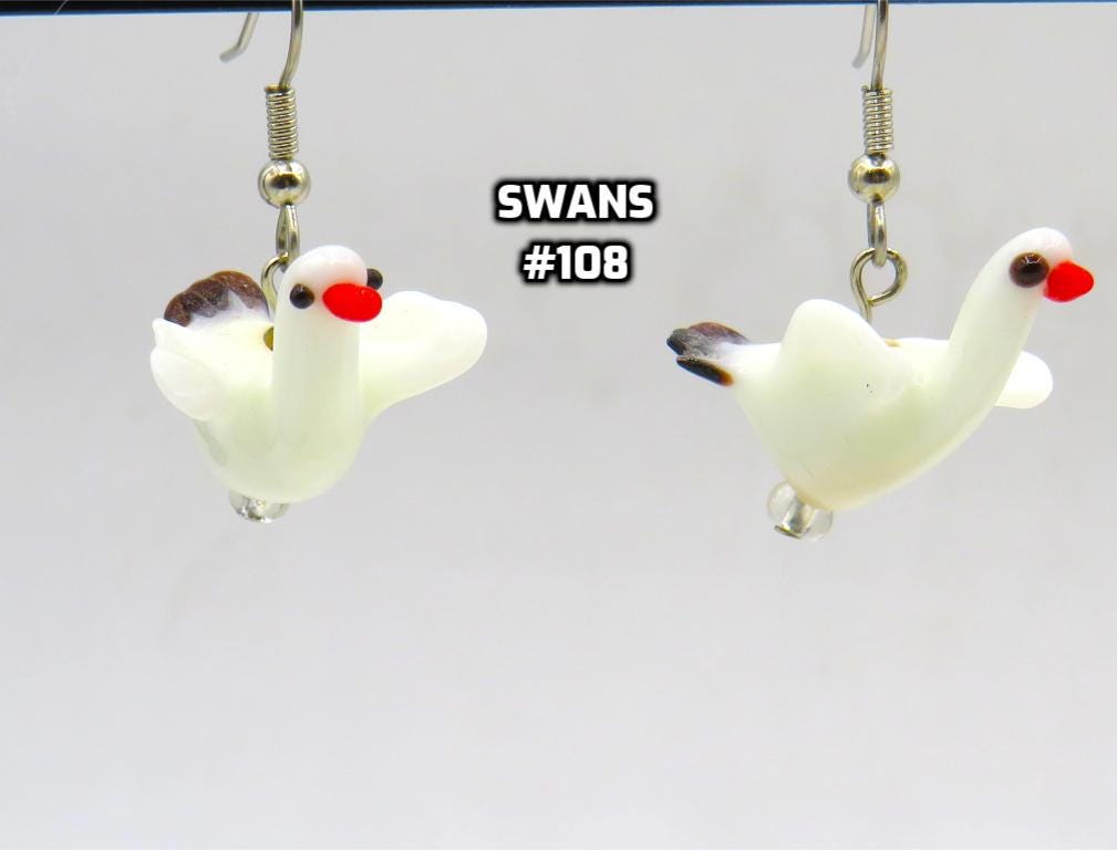 *White Swan Glass 22mm 3D Bead Earrings