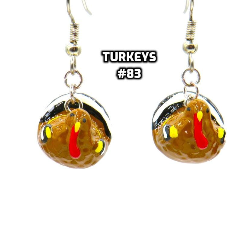 *3-D Hand-painted Turkey Resin 16mm Bead Earrings