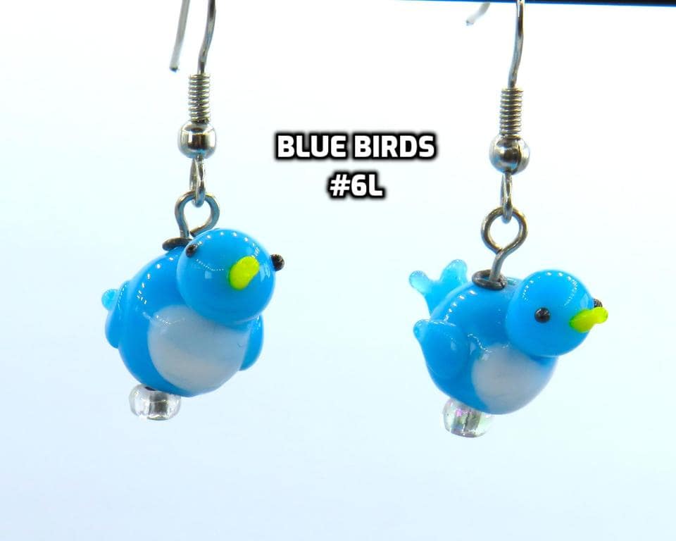 *3-D Blue Bird Lampwork Glass 12x20mm Bead Earrings