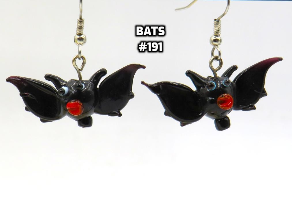 *3-D Bats 14x37mm Lampwork Glass Bead Earrings