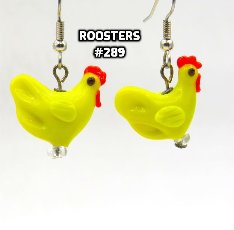 *Rooster 19x18mm Yellow Glass 3D Bead Earrings