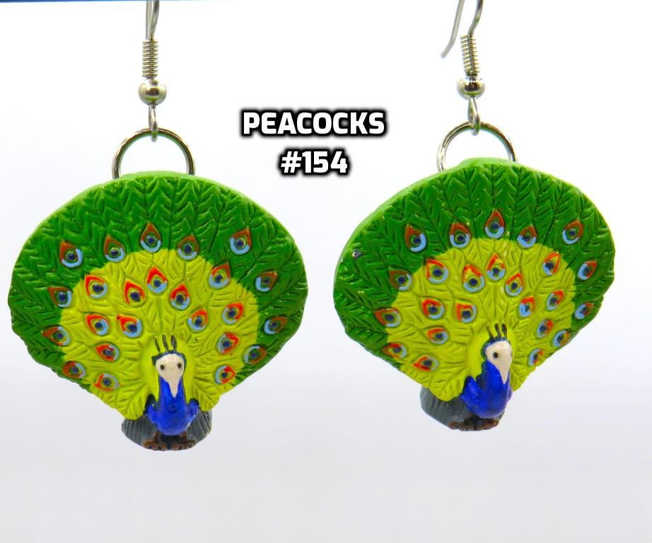 *Peacock Ceramic 31x31mm Hand-painted 3-D Bead Earrings