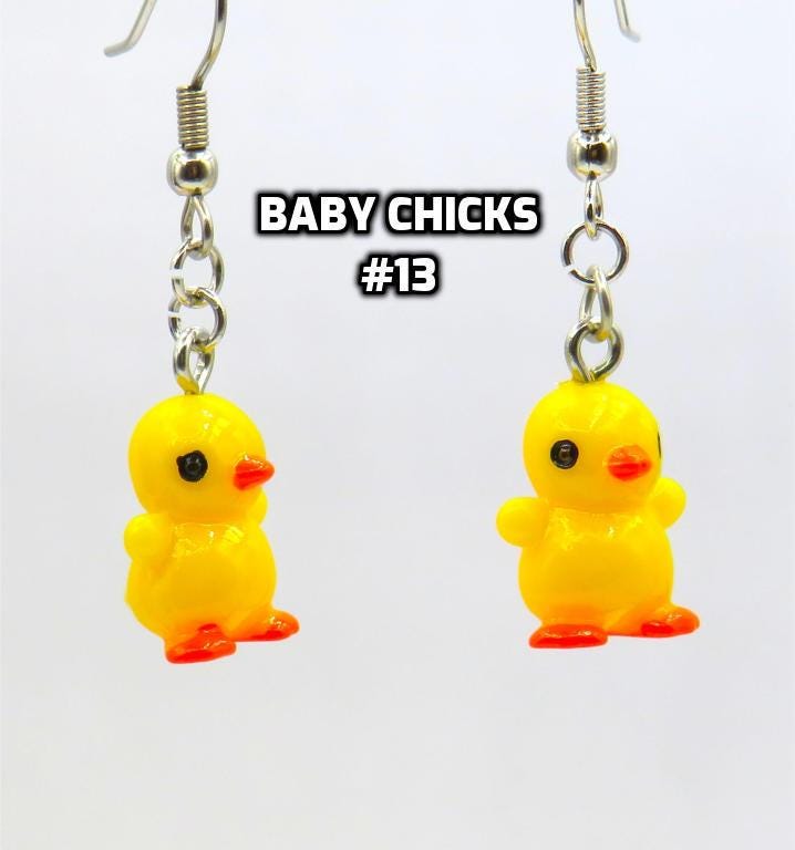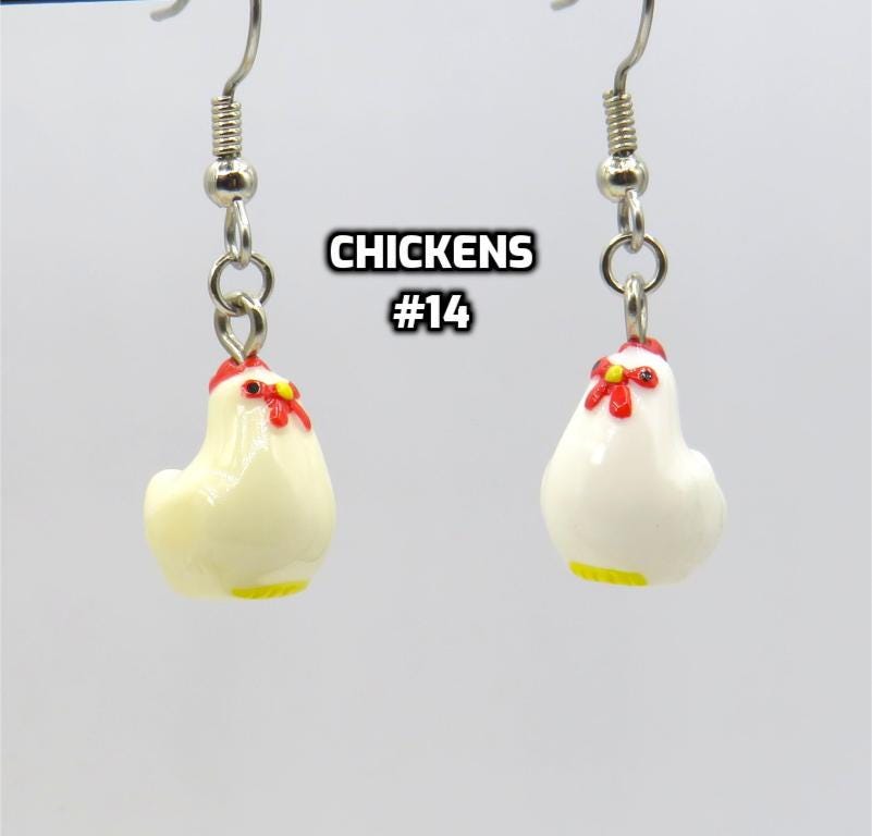 *Chicken Resin 13x15mm 3D Bead Earrings