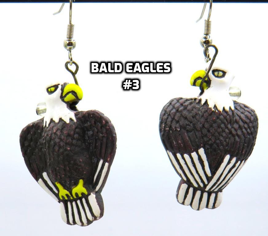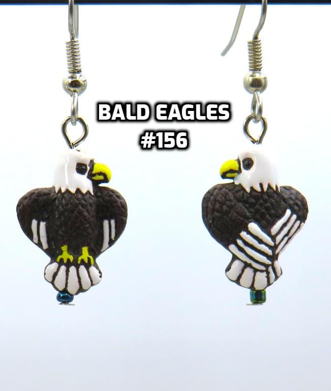 *Bald Eagle Ceramic 25x35mm Hand-painted 3-D Bead Earrings