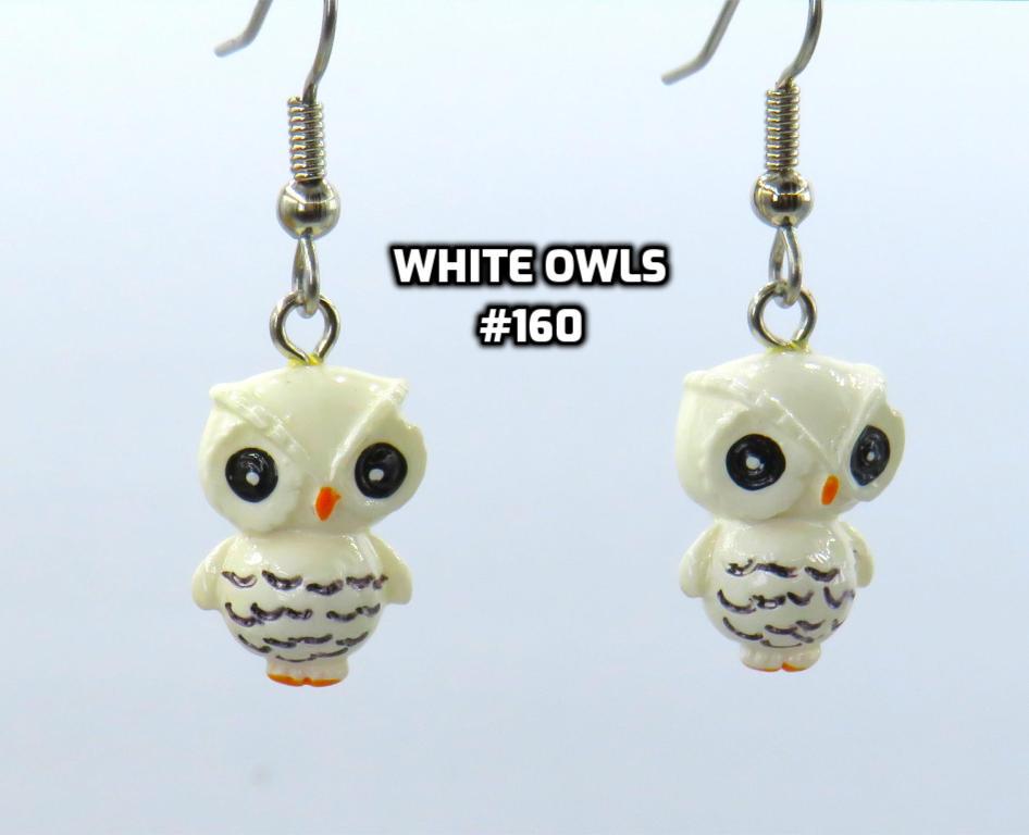 *3-D Hand-painted White Snow Owl 11x16mm Resin Bead Earrings