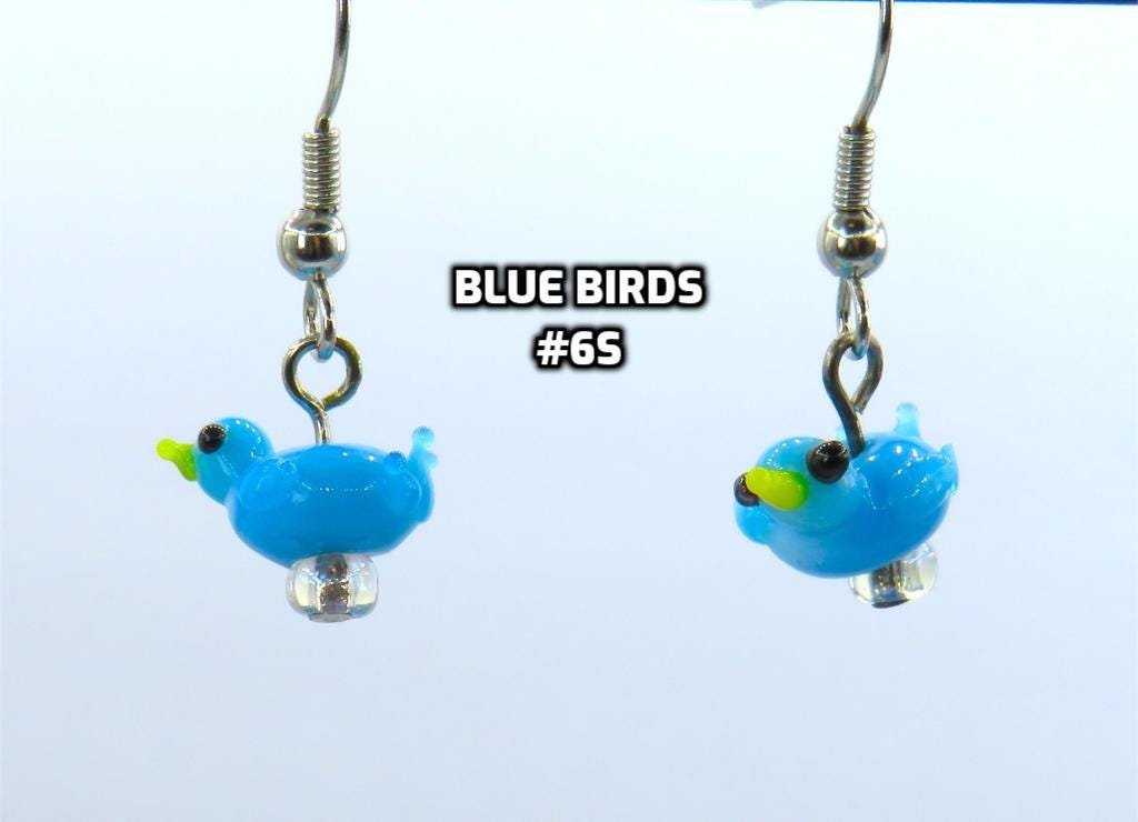 *3-D Blue Bird Lampwork Glass 7x14mm Bead Earrings