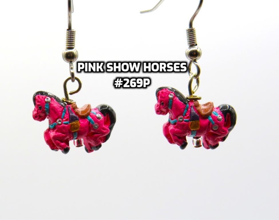*3D Peru Ceramic Pink Show Horse 17x26mm Bead Earrings