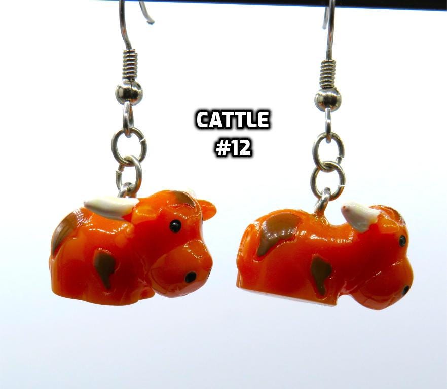 *3D Hand-painted Longhorn Cattle Resin 14x20mm Bead Earrings