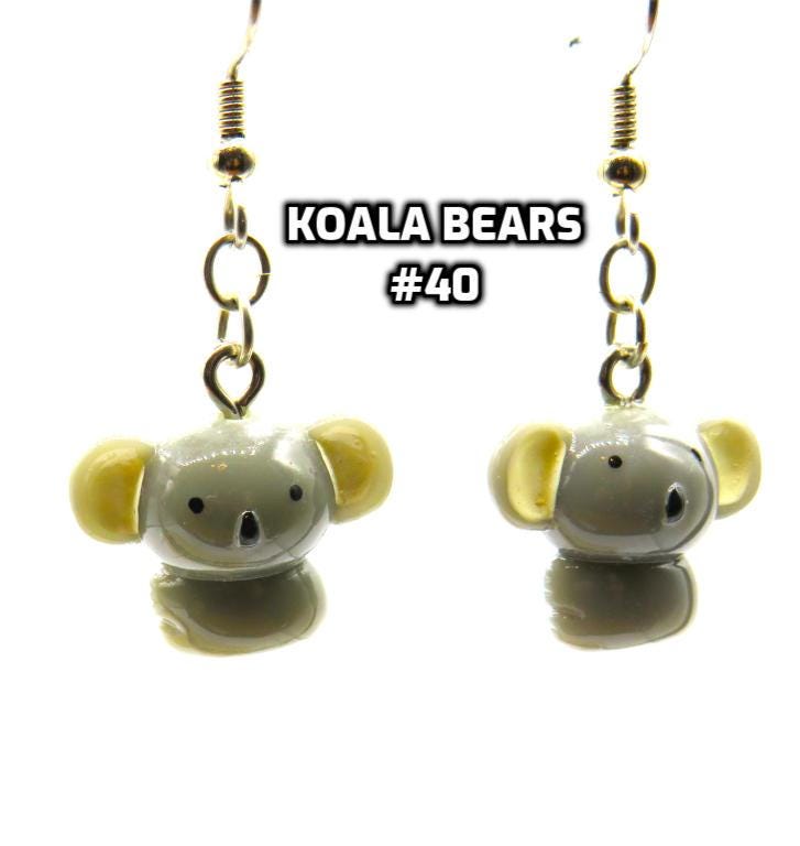 *3D Hand-painted Koala Bear Resin 14x19mm Bead Earrings