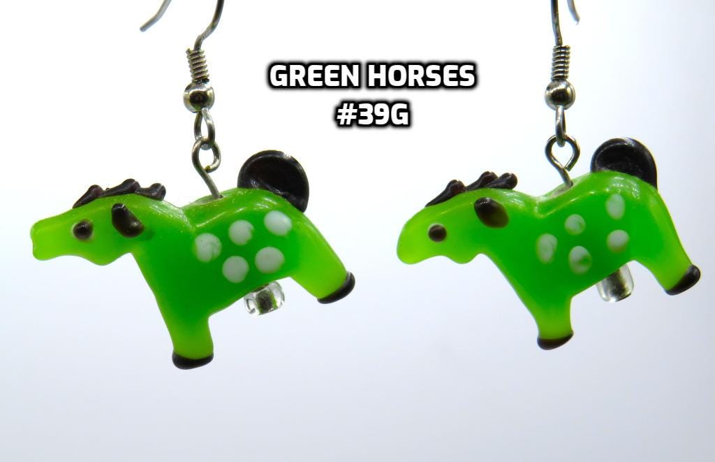 *3D Green Horse Lampwork 19x27mm Glass Bead Earrings