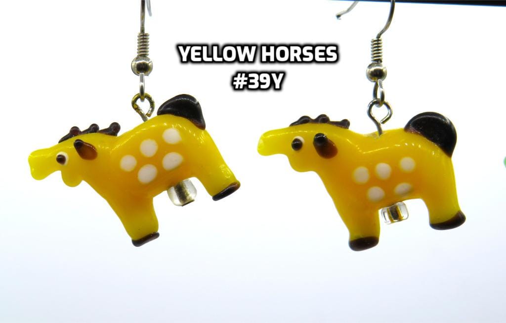 *3D Yellow Horse Lampwork 19x27mm Glass Bead Earrings