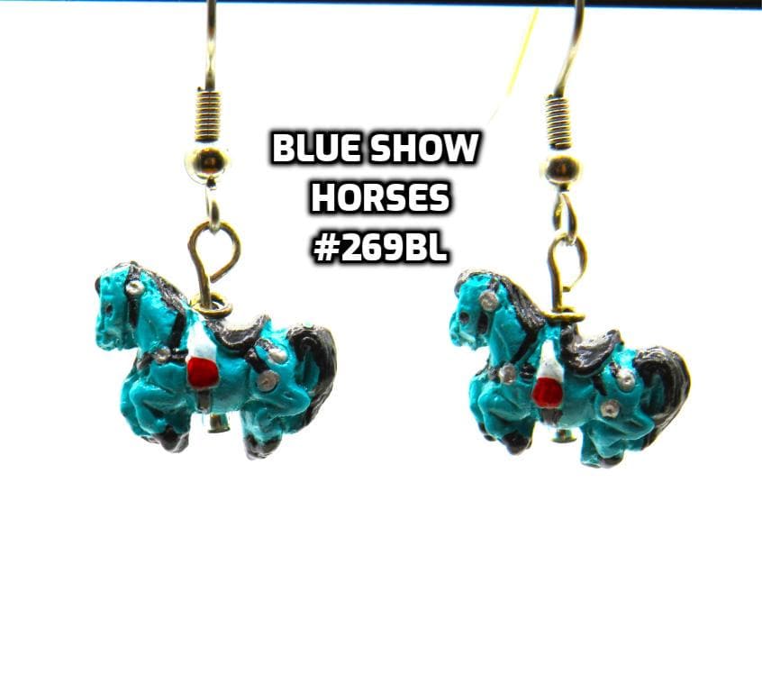 *3D Peru Ceramic Blue Show Horse 17x26mm Bead Earrings