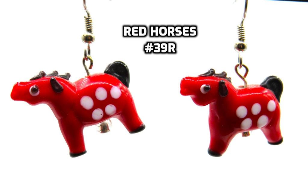 *3D Red Horse Lampwork 19x27mm Glass Bead Earrings