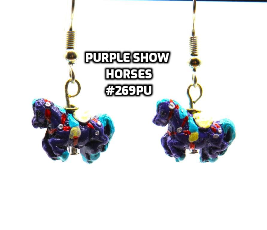 *3D Peru Ceramic Purple Show Horse 17x26mm Bead Earrings