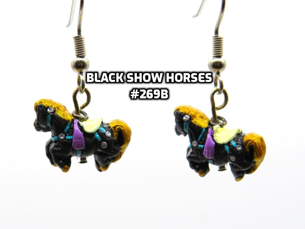 *3D Peru Ceramic Black Show Horse 17x26mm Bead Earrings