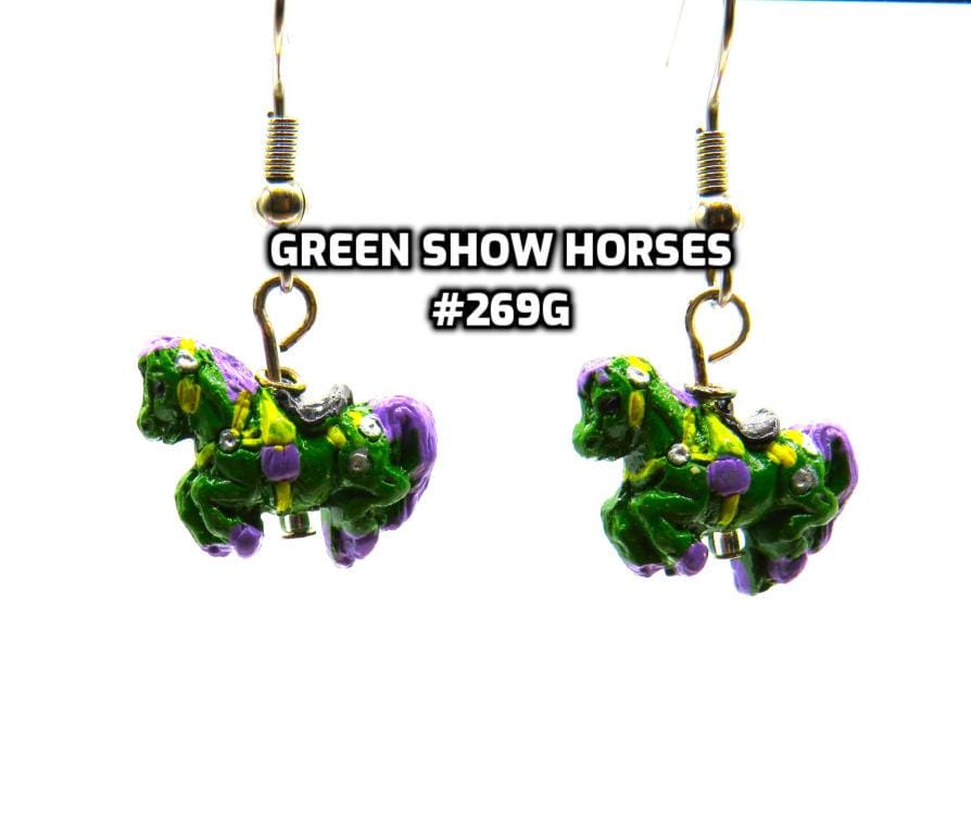 *3D Peru Ceramic Green Show Horse 17x26mm Bead Earrings