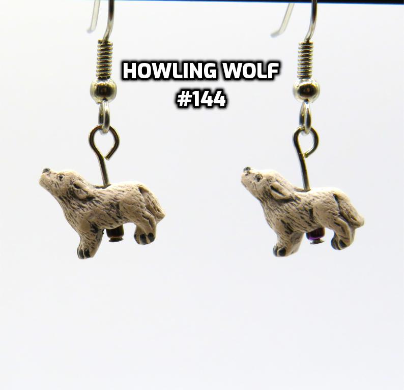 *3D Hand Painted Howling Wolf White 12x14mm Ceramic Bead Earrings