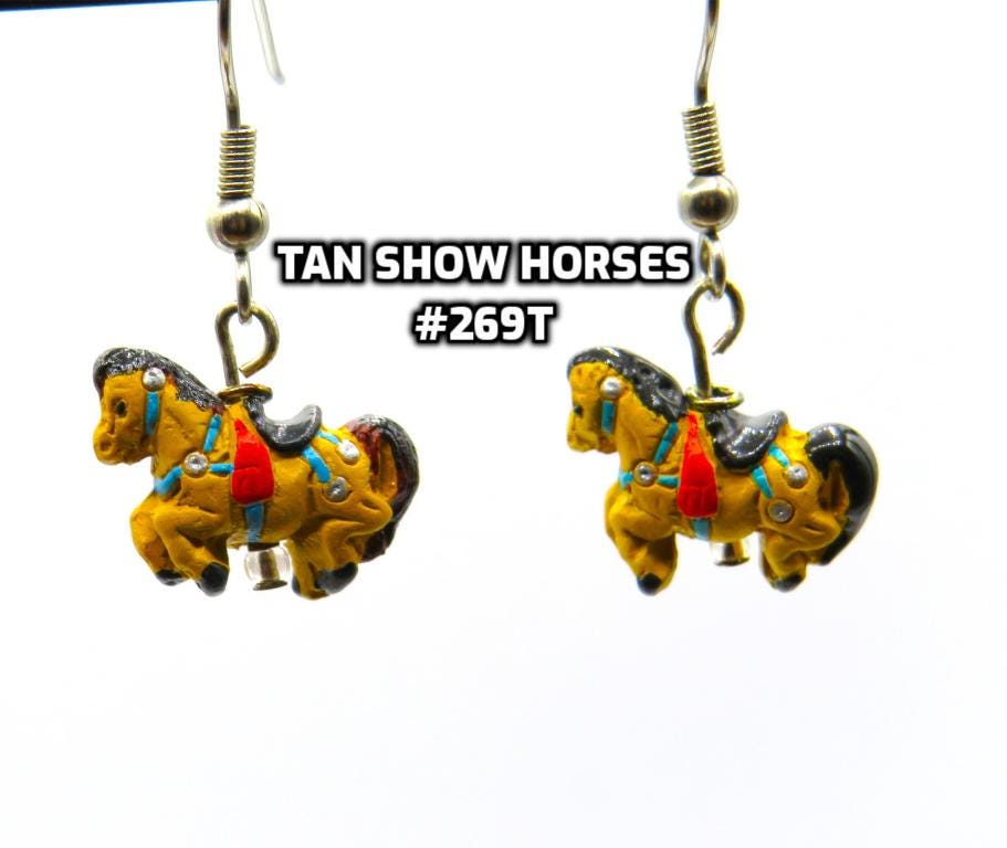 *3D Peru Ceramic Tan Show Horse 17x26mm Bead Earrings