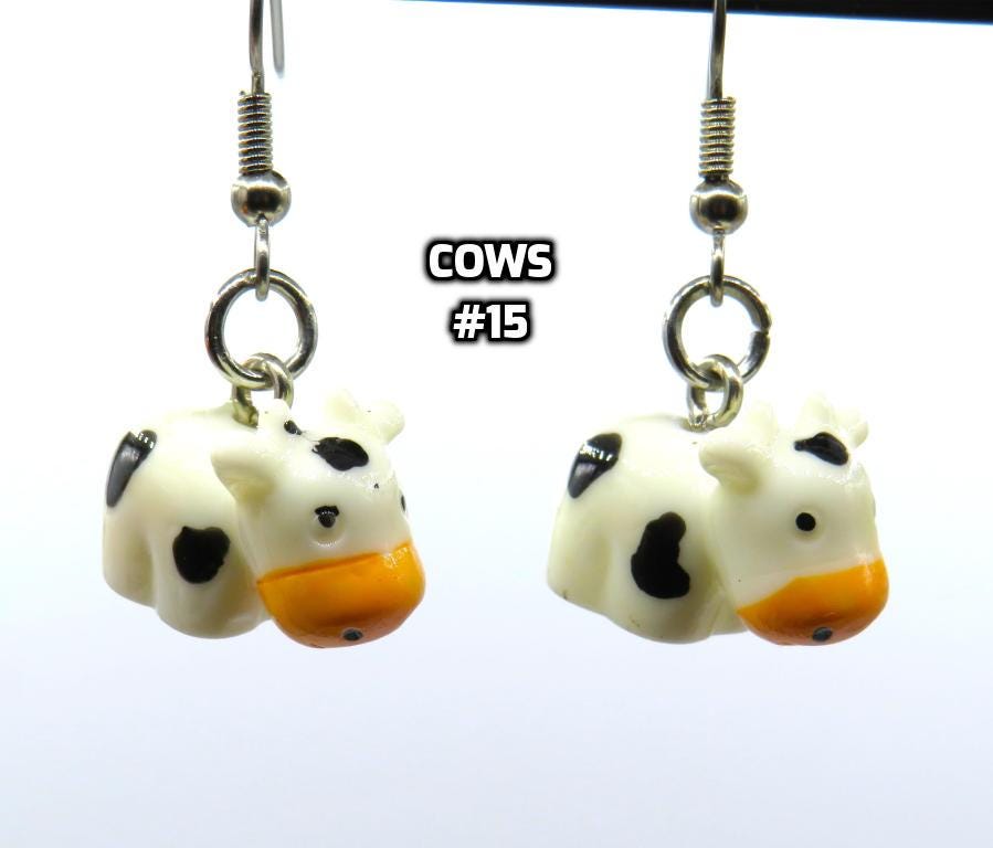 *3D Hand-painted Cow Resin 14x20mm Bead Earrings