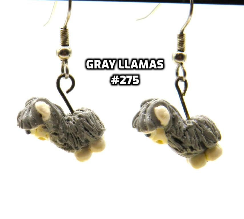 *Gray Llama Polymer Handmade 12x19mm Bead Earrings