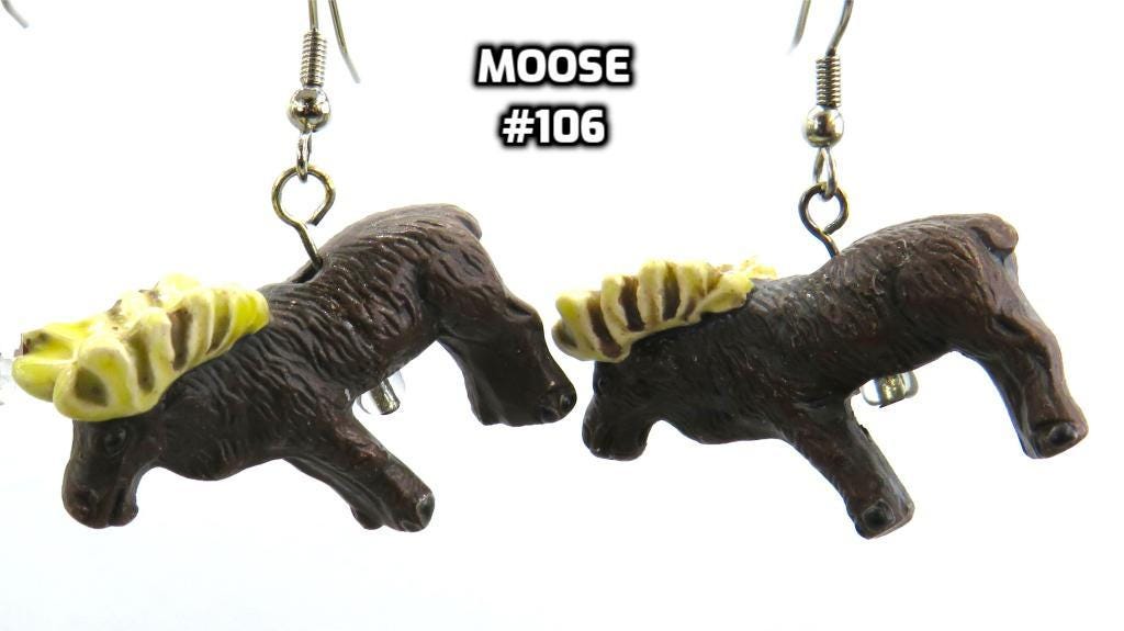 *3D Hand Painted Moose 28x34mm Ceramic Bead Earrings