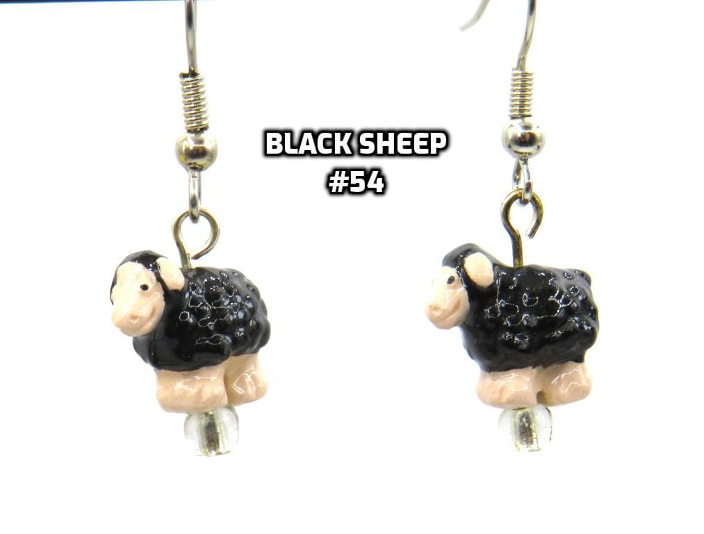 *3-D Hand-painted Black Sheep Ceramic 12x13mm Bead Earrings